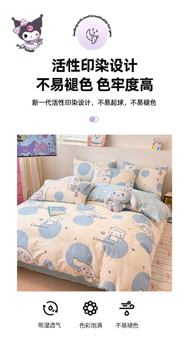 当前位置: 91家纺网 > 商品网购 > 床品套件 > 四件套 > 全棉普通四件套 > 简宜家居(朝初家纺) 2026新款40支100%纯棉全棉13070斜纹四件套-三丽鸥卡通系列 玉桂狗