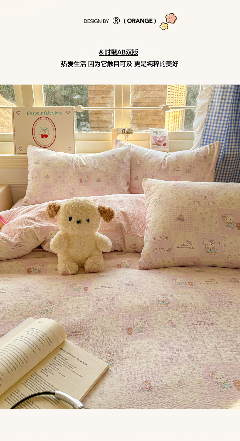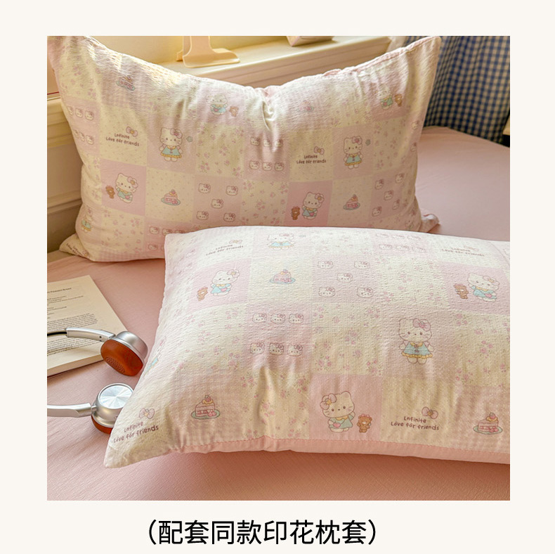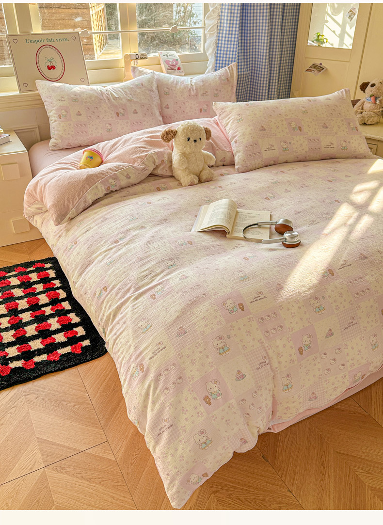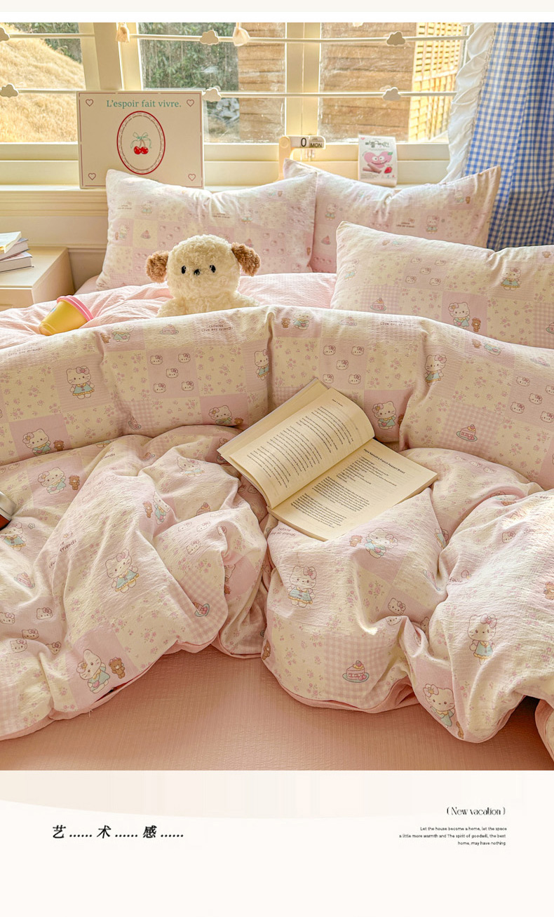 当前位置: 91家纺网 > 商品网购 > 床品套件 > 四件套 > 其它四件套 > 柒月家居 2026新款云感皱皱纱小清新木棉四件套 拼格小猫