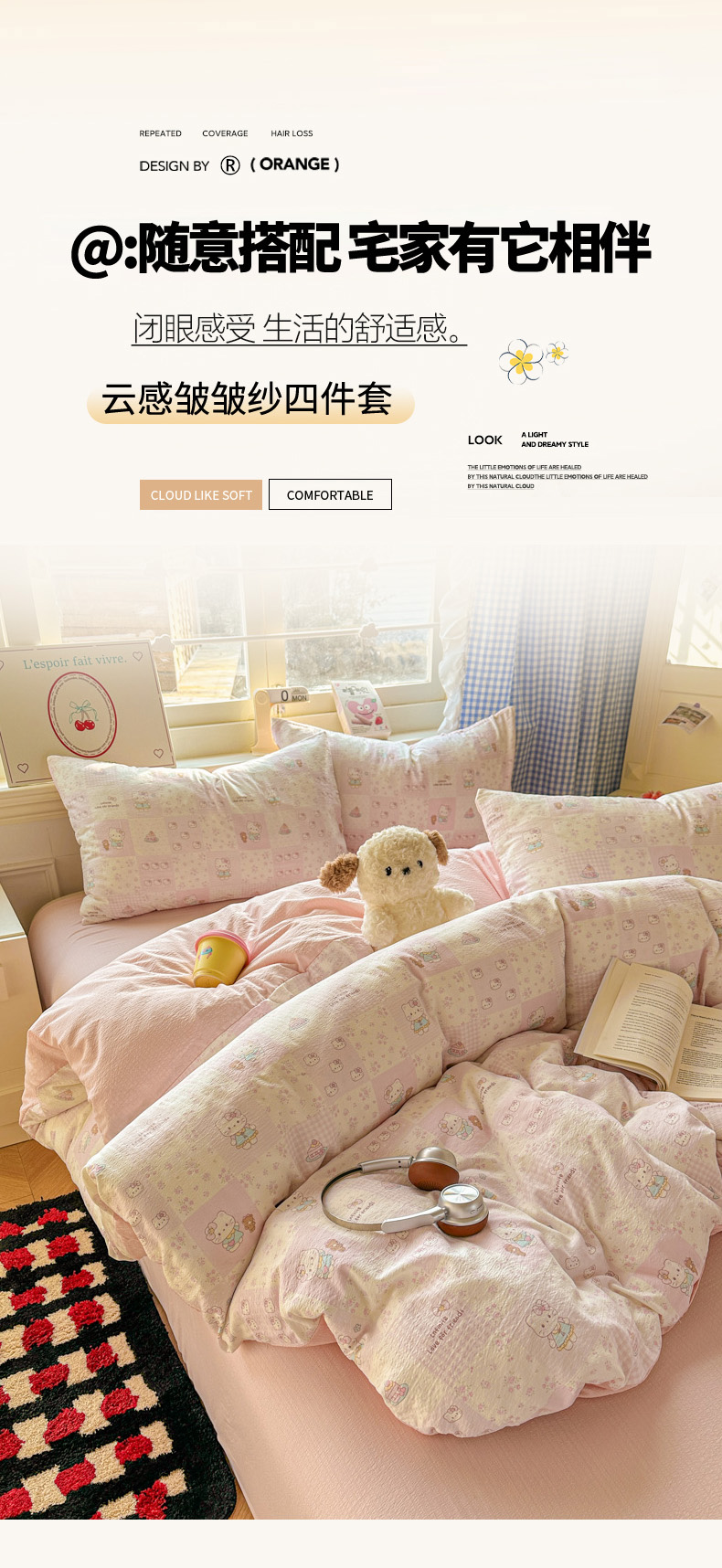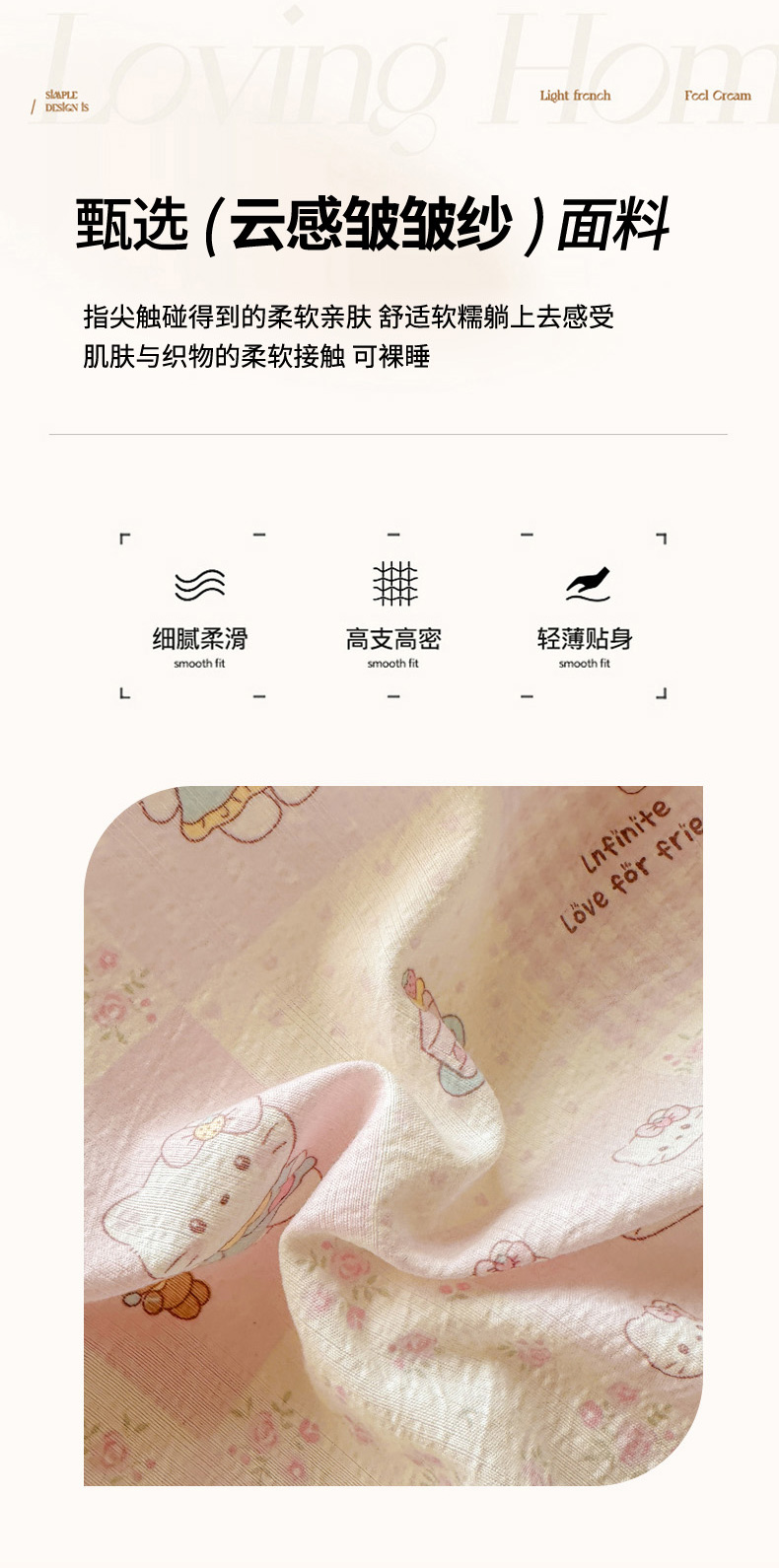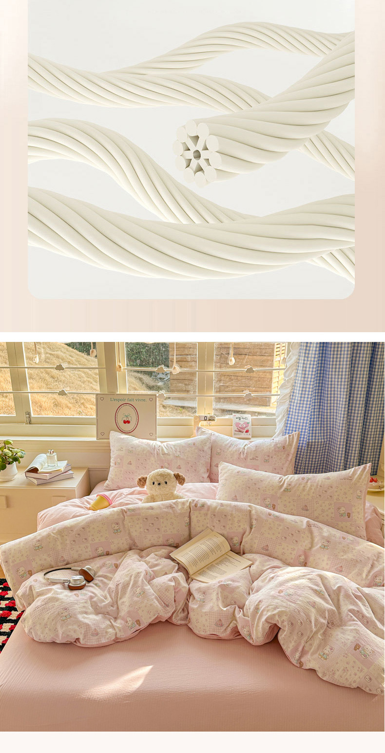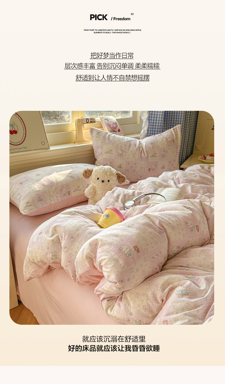 当前位置: 91家纺网 > 商品网购 > 床品套件 > 四件套 > 其它四件套 > 柒月家居 2026新款云感皱皱纱小清新木棉四件套 拼格小猫