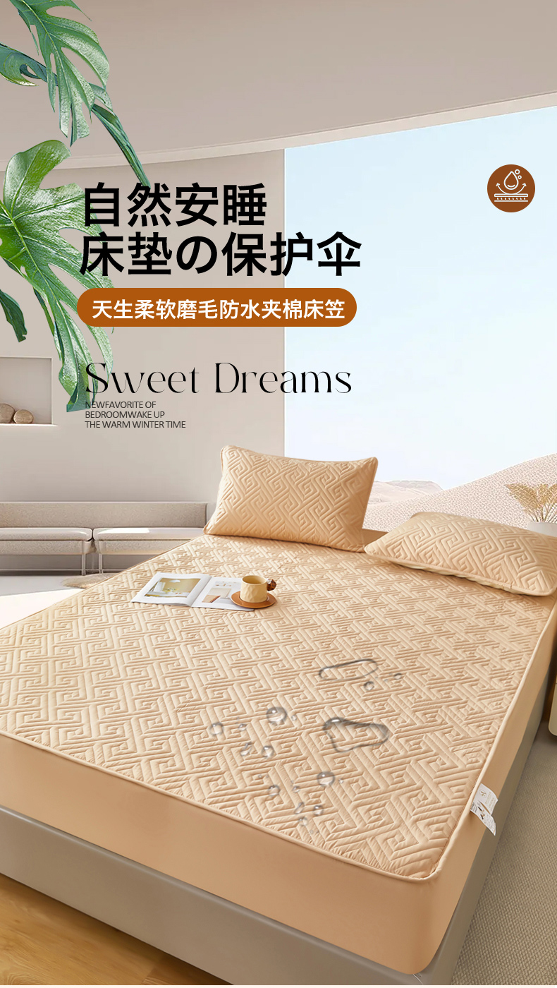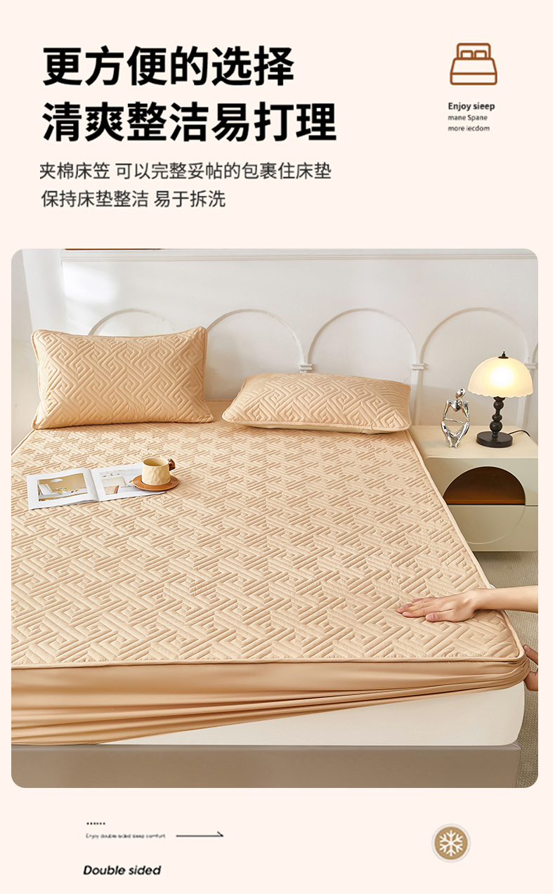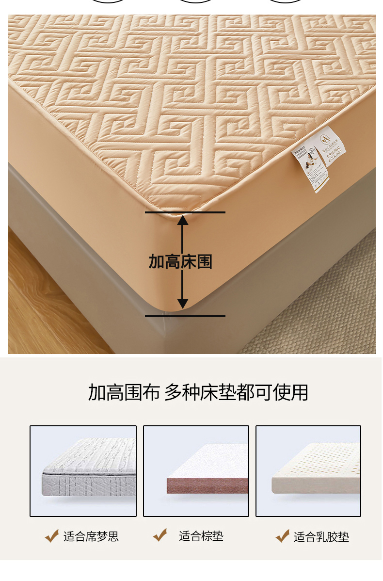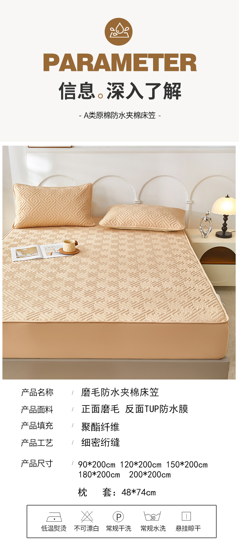 • 91家纺网 家纺一手货源 找家纺 三盛源 2026新款A类防水夹棉床笠加厚席梦思床垫保护套床笠罩防滑-简奢系列(支持小批量定制尺寸) 简奢系列-奶咖