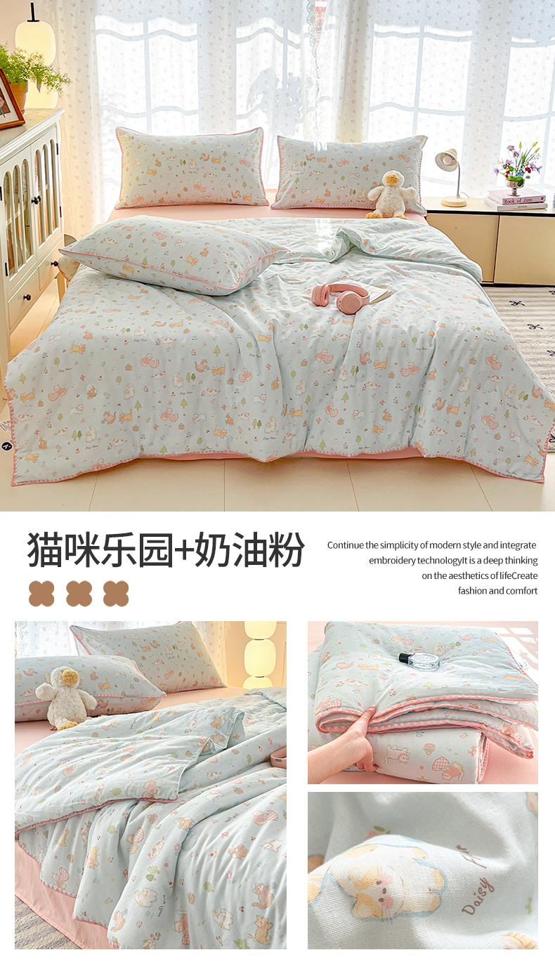(总)盛秋家纺 2026新款皱皱纱印花夏被-萝拉,生日派对+清新绿,格子花园+奶油粉,格子铺粉+天空蓝,花丛小熊+奶油粉,可可颂蓝+天空蓝,恐龙游记+天空蓝,快乐时光+深咖,麻薯团+米驼,派对狗+深咖,森林小象+奶油粉,小狗来信+奶油粉,小伙伴+米驼,小熊小花+麦绿,修勾咖+米驼