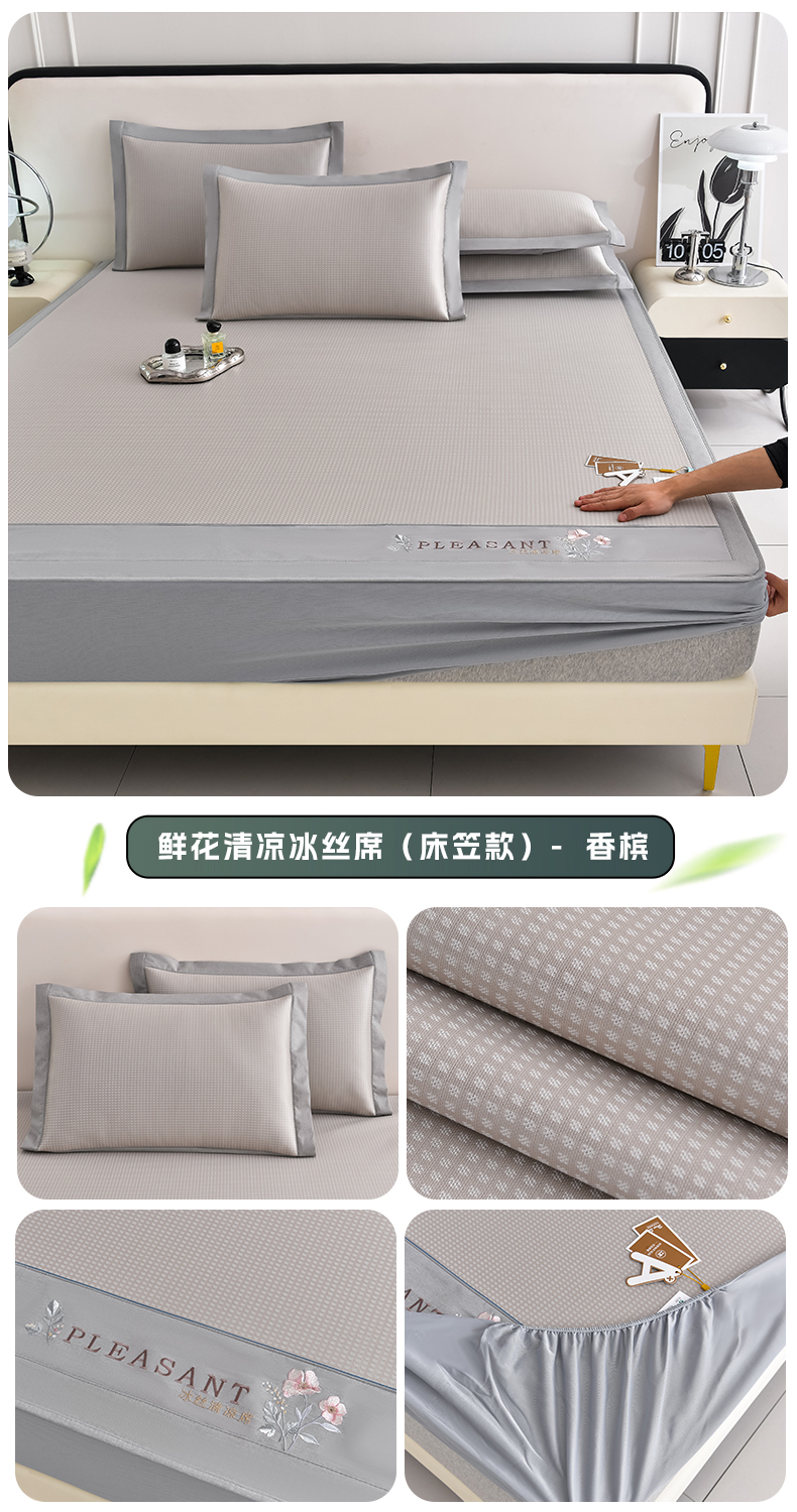 (总)小牛席业 2026春夏新款轻奢半定位凉感冰丝席凉席席子系列床笠款,轻奢半定位-粉色 床笠款,轻奢半定位-灰色 床笠款,轻奢半定位-蓝色 床笠款,轻奢半定位-抹茶 床笠款,轻奢半定位-香槟 床笠款