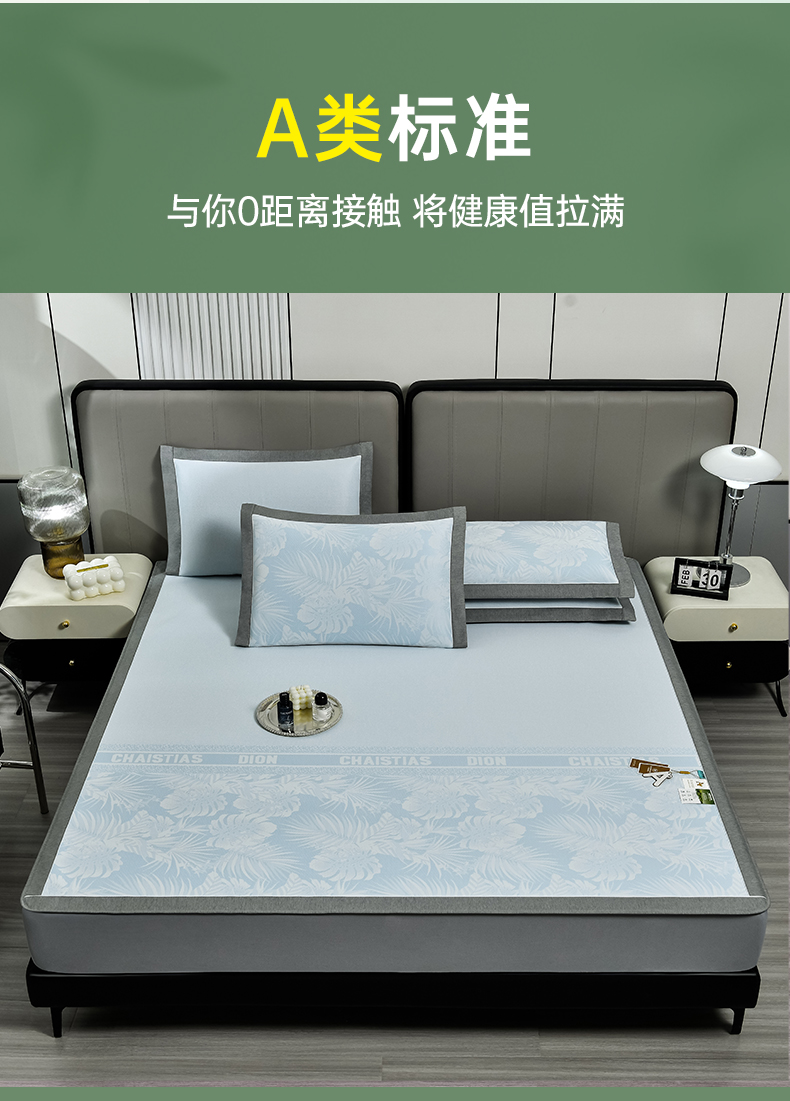 (总)2023新款超精密冰丝席-小斜纹系列-床笠款藤席凉席竹席,粉色,蓝色,绿色,银灰