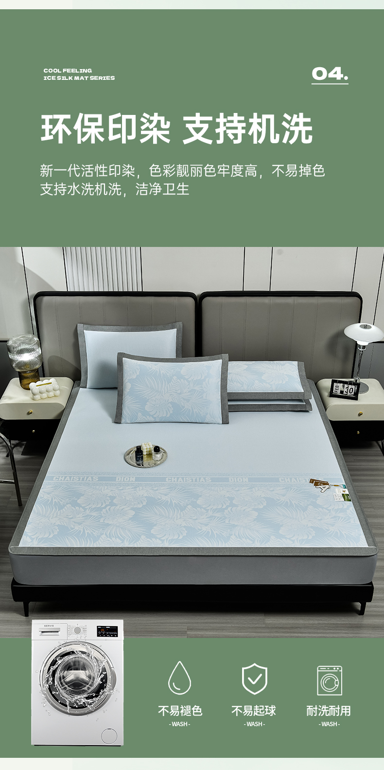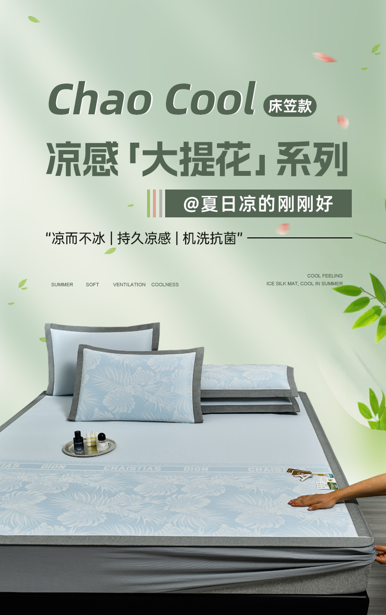 (总)小牛席业 2026新款小冰块大象凉感冰丝席(床笠款)凉席竹席藤席冰藤席乳胶席豆豆席,绿色,粉色,灰色,蓝色,香槟