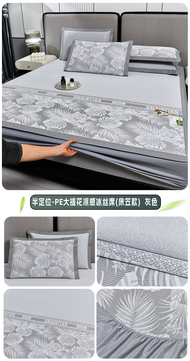 (总)小牛席业 2026新款半定位大提花凉感冰丝席(床笠款)凉席竹席藤席冰藤席乳胶席豆豆席,灰色,粉色,蓝色,香槟