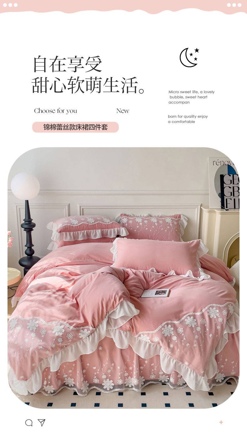 (总)睡美人 2026新款锦棉糯糯棉韩版蕾丝公主款双层纱被套床裙四件套-翩翩起舞,翩翩起舞-锦豆沙,翩翩起舞-蜜桃粉,翩翩起舞-青春兰,翩翩起舞-嫩芽绿,翩翩起舞-胭脂红