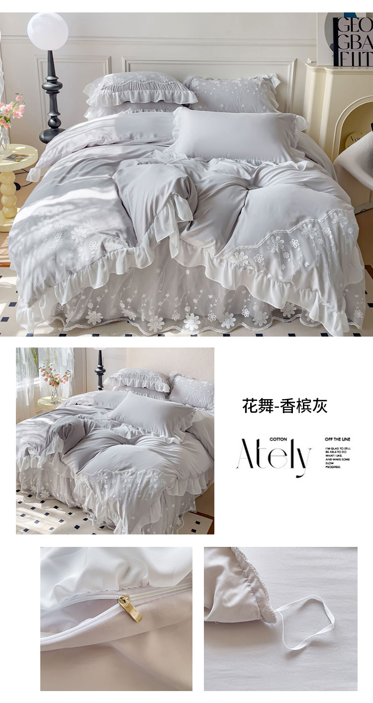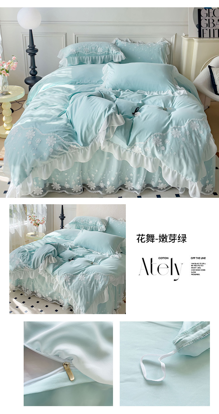 (总)睡美人 2026新款锦棉蕾丝款系列韩版公主风床裙四件套-花舞,花舞-锦豆沙,花舞-蜜桃粉,花舞-嫩芽绿,花舞-青春兰,花舞-香槟灰,花舞-香叶紫,花舞-胭脂红