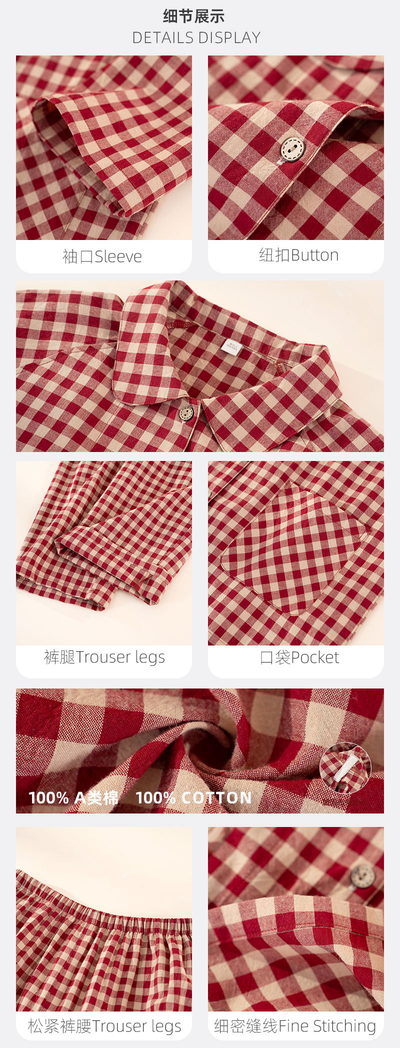 (总)洛兰沙家居馆 新品纯棉睡衣女 水洗棉纯棉长袖春秋夏薄款长袖男情侣格子家居服,女款,男款