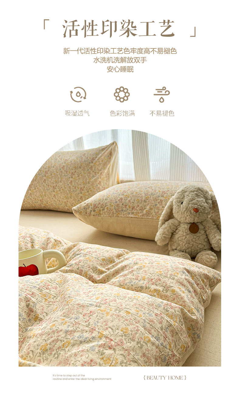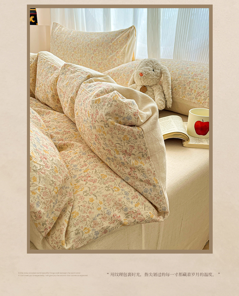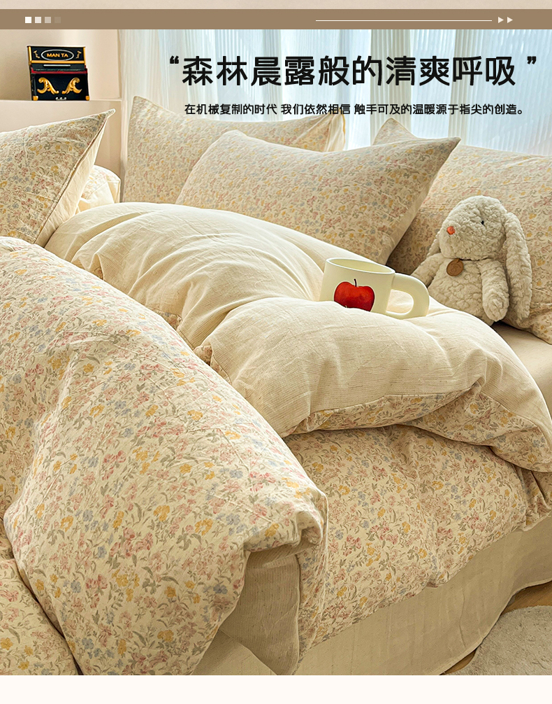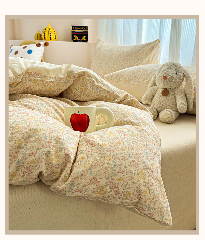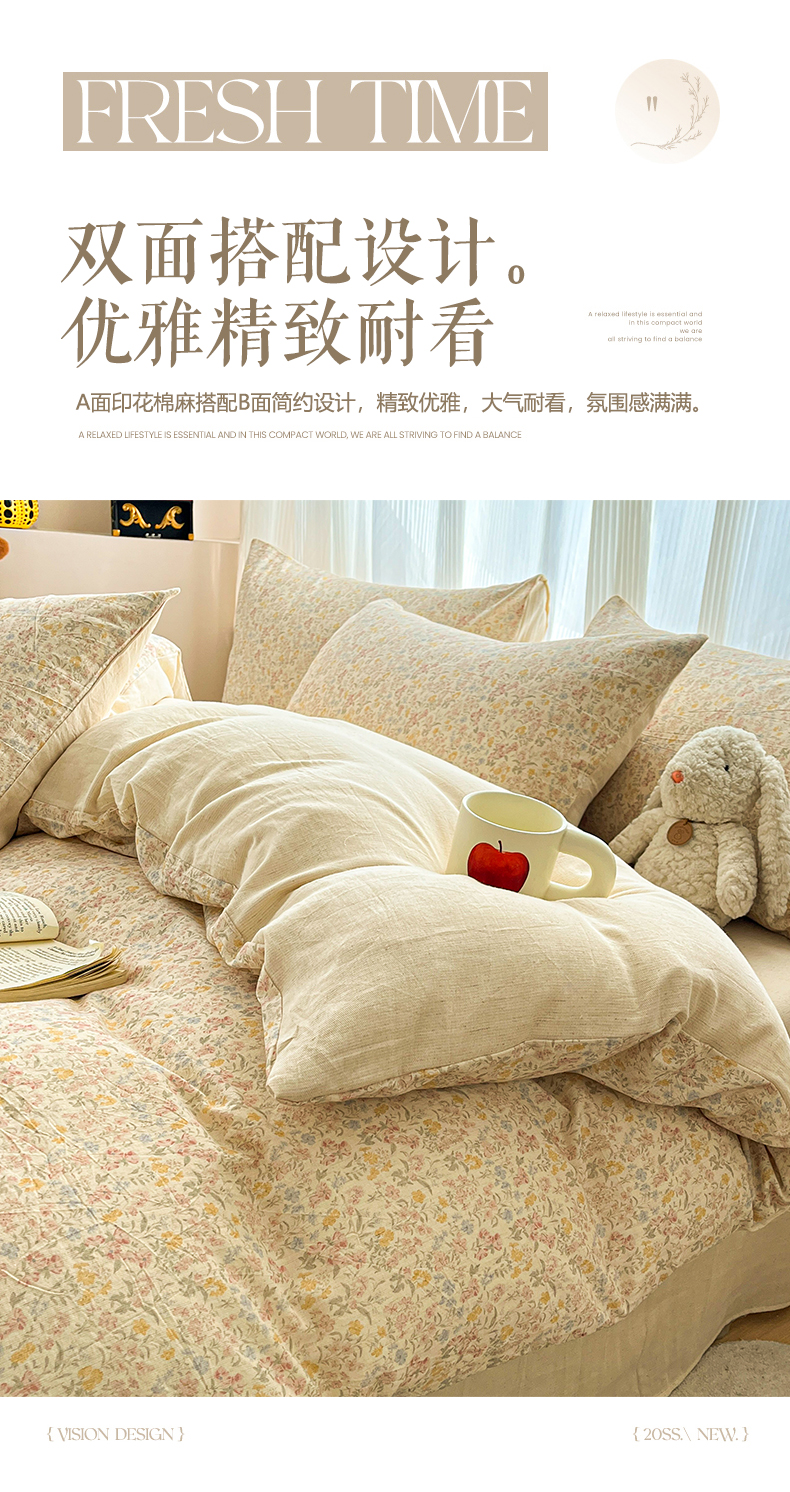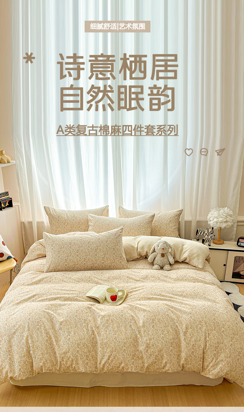 商品名称:寐居家纺 2026新款A类复古棉麻四件套 浅夏碎花