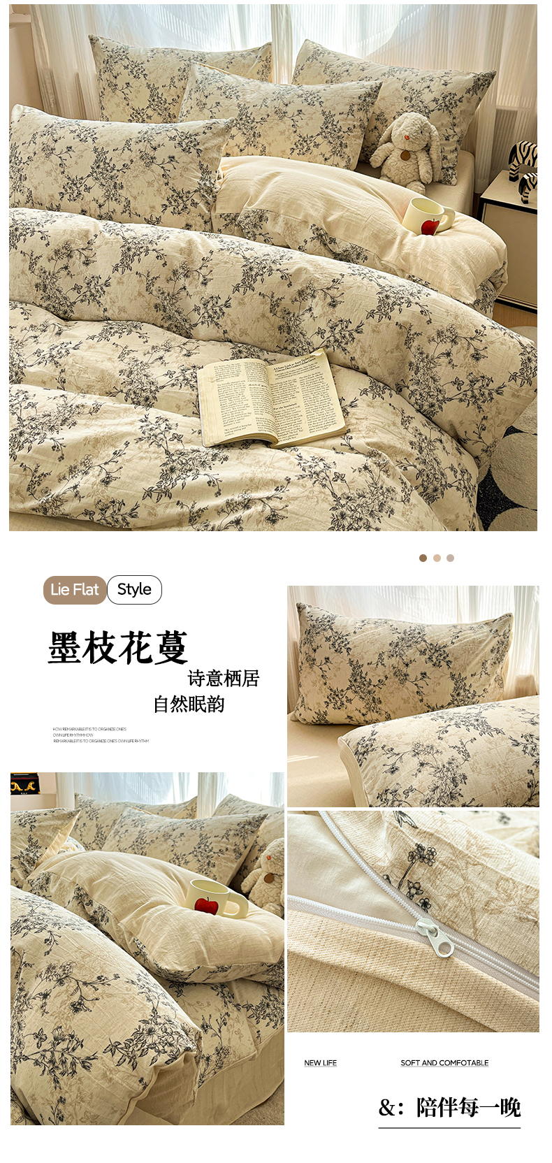 (总)寐居家纺 2026新款A类复古棉麻四件套,蝶语花眠,花格漫榻,旧梦织枝,棉麻象语,墨枝花蔓,暖阳花绒,浅花兔影,浅梦蝶兔,浅夏碎花,深林夜语