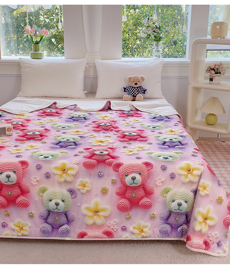 (总)默忆 2026新款直播热款5D数码凉感冰丝夏被,粉色毛线熊,幻影熊宝,凯特熊紫,可爱宝宝熊,可爱熊猫,蓝黄熊宝,蓝色小兔,萝卜兔,向阳花,小飞马
