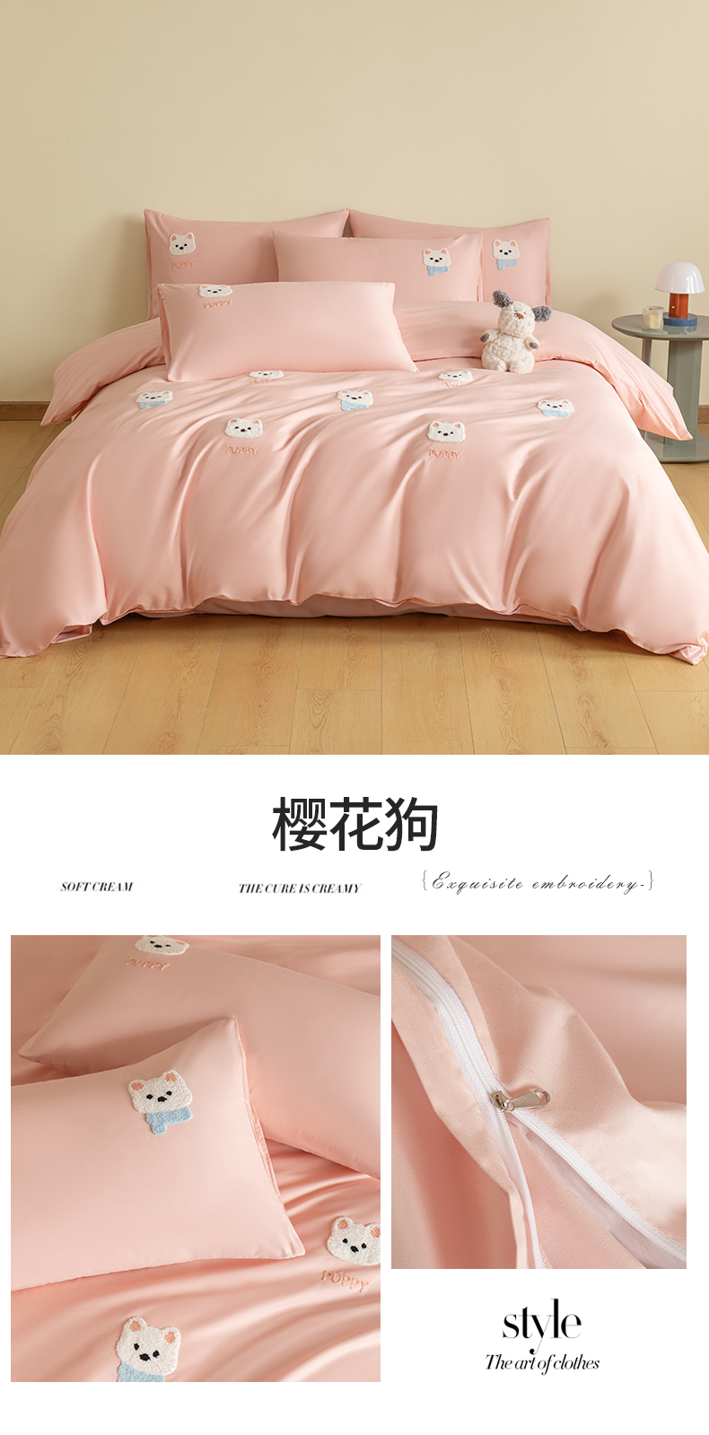 商品名称:857家居 2026新款全棉毛巾绣四件套 樱花狗