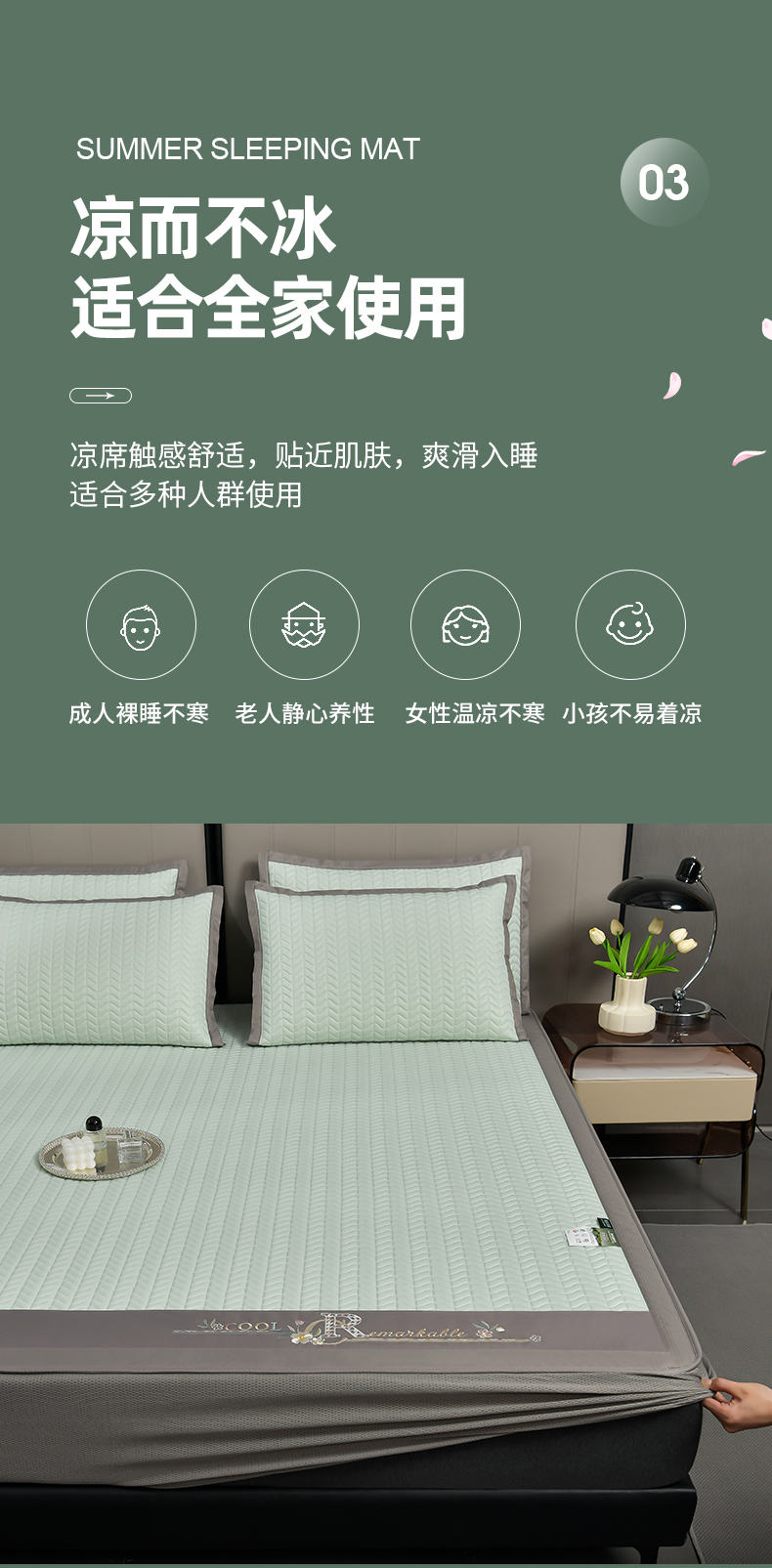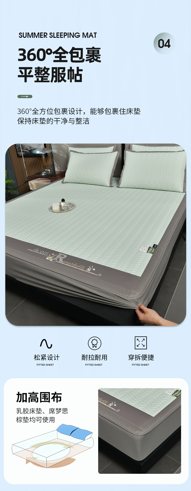 当前位置: 91家纺网 > 商品网购 > 床上用品 > 凉席 > 乳胶凉席 > 小牛席业 2026新款CR冷感乳胶席(床笠款)凉席藤席冰藤席竹席空调席草席冰丝席豆豆席乳胶席三件套 CR冷感乳胶席床笠款-水绿