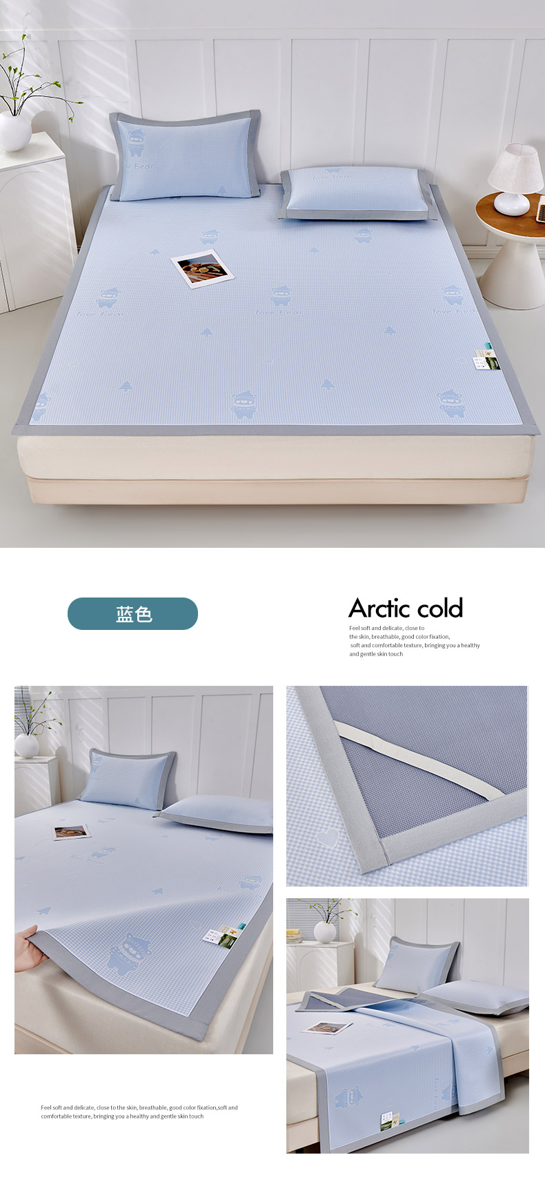(总)小牛席业 2026新款小冰块大象凉感冰丝席(床笠款)凉席竹席藤席冰藤席乳胶席豆豆席,绿色,粉色,灰色,蓝色,香槟