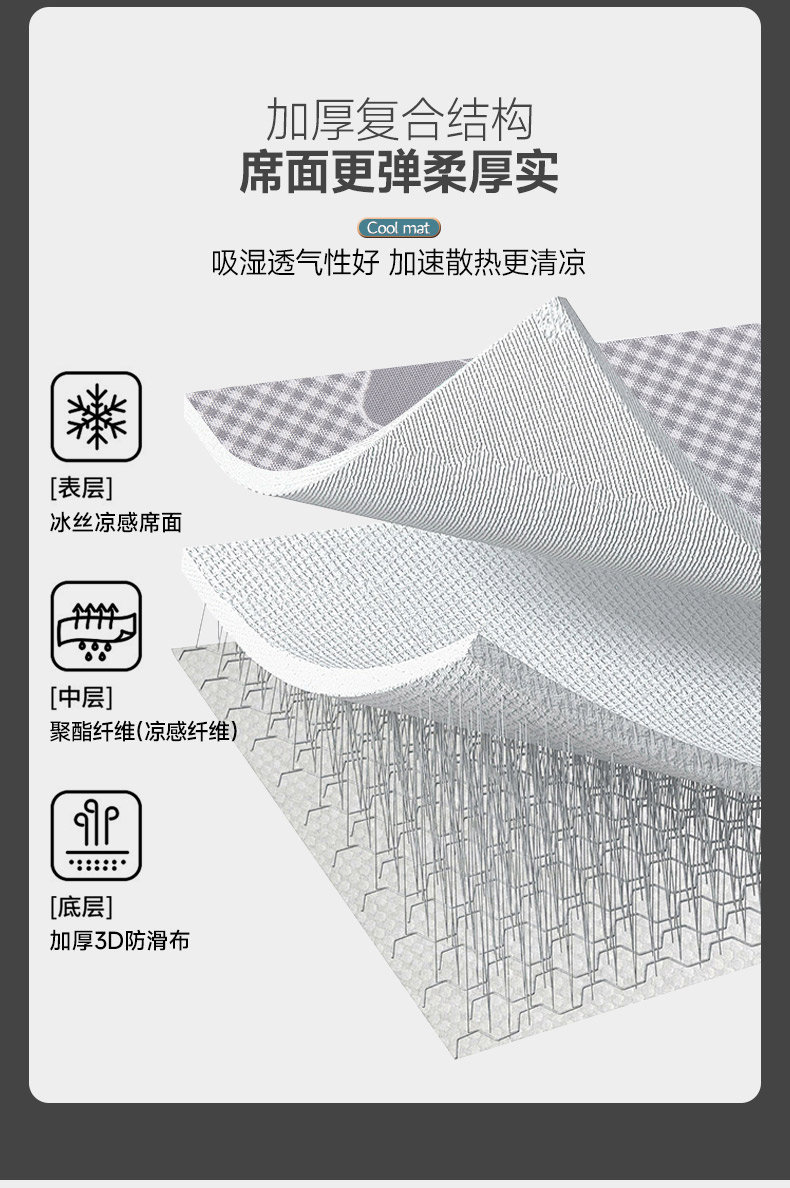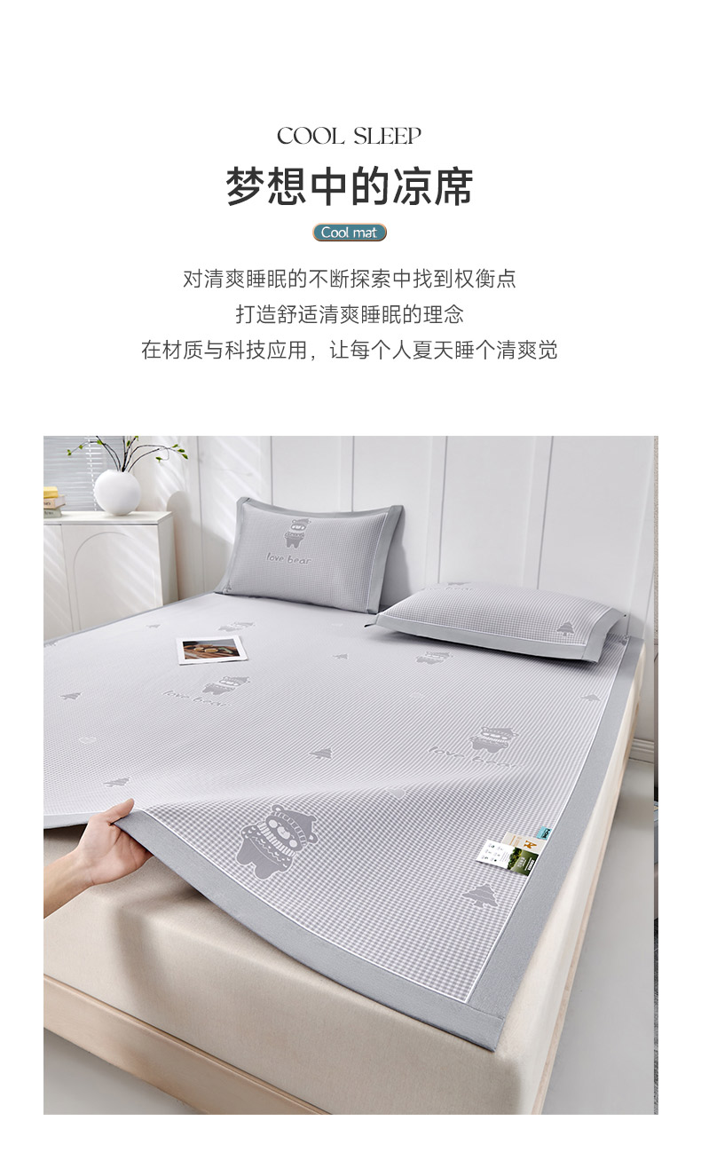 (总)小牛席业 2026新款小冰块大象凉感冰丝席凉席竹席藤席冰藤席乳胶席豆豆席,粉色,香槟,灰色,绿色,蓝色