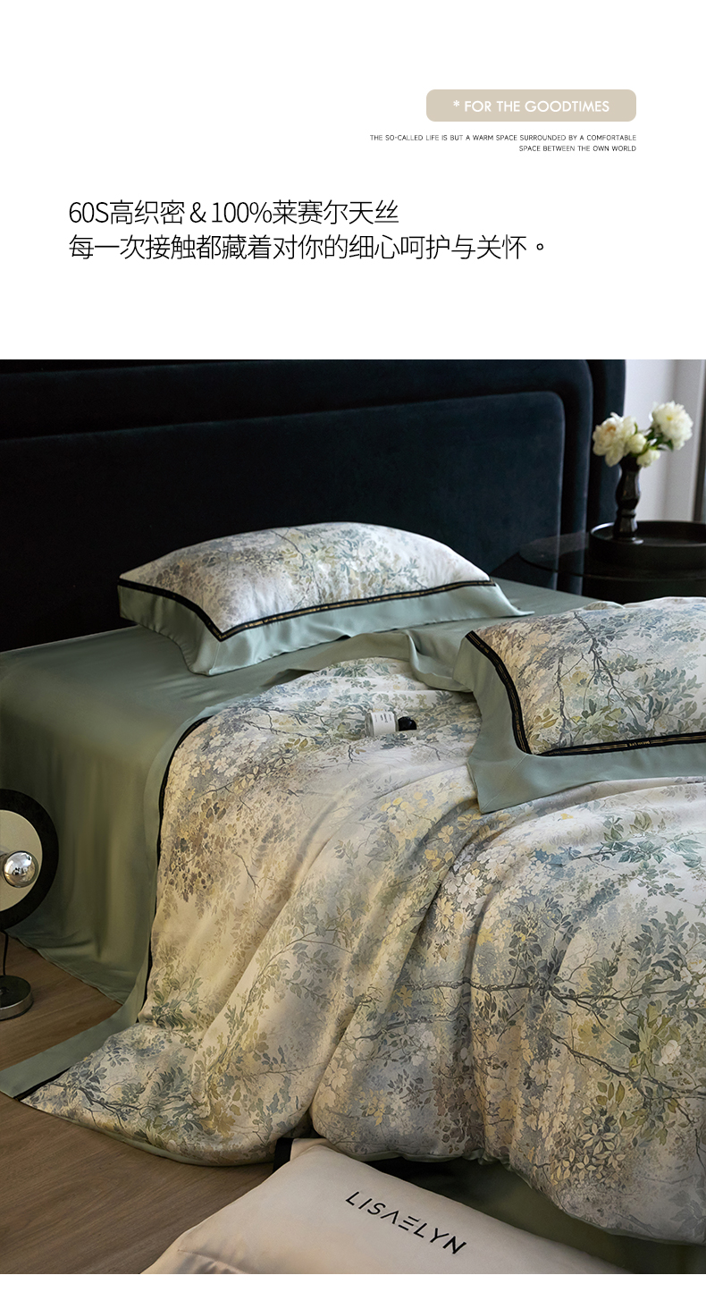 当前位置: 91家纺网 > 商品网购 > 床品套件 > 四件套 > 莱赛尔四件套 > 慕梵家居 2026新款60支100%莱赛尔天丝四件套 庐山云雾