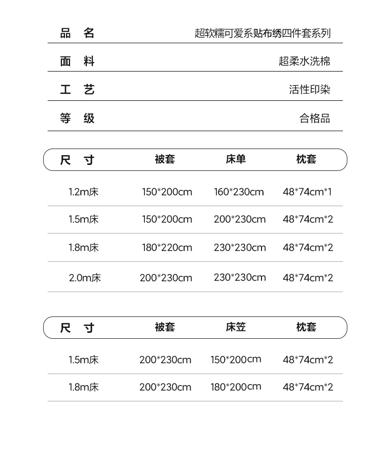 【床笠款】1.8四件套-被套200x230 | ¥76.00 |