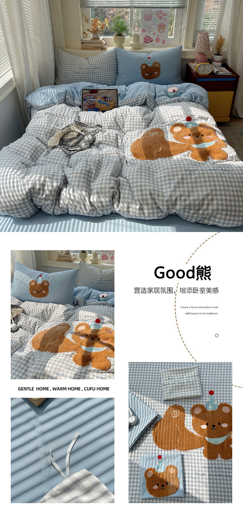当前位置: 91家纺网 > 商品网购 > 床品套件 > 四件套 > 其它四件套 > 贝扬思家纺 2026春夏新款云朵贴布绣绣花四件套 Good熊