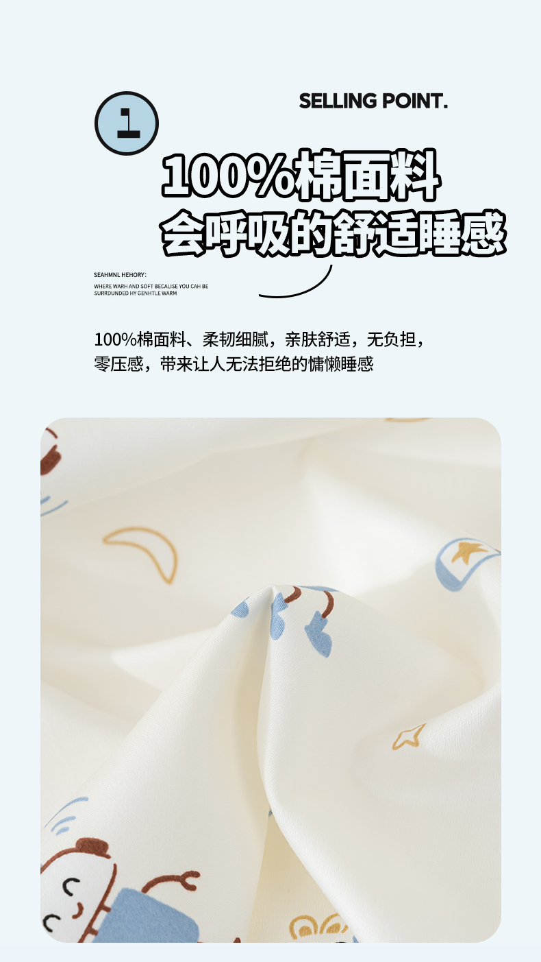 商品名称:(总)良佐生活 2026新款A类60支全棉贡缎长绒棉儿童单件被套纯棉学生被套单品被罩直播