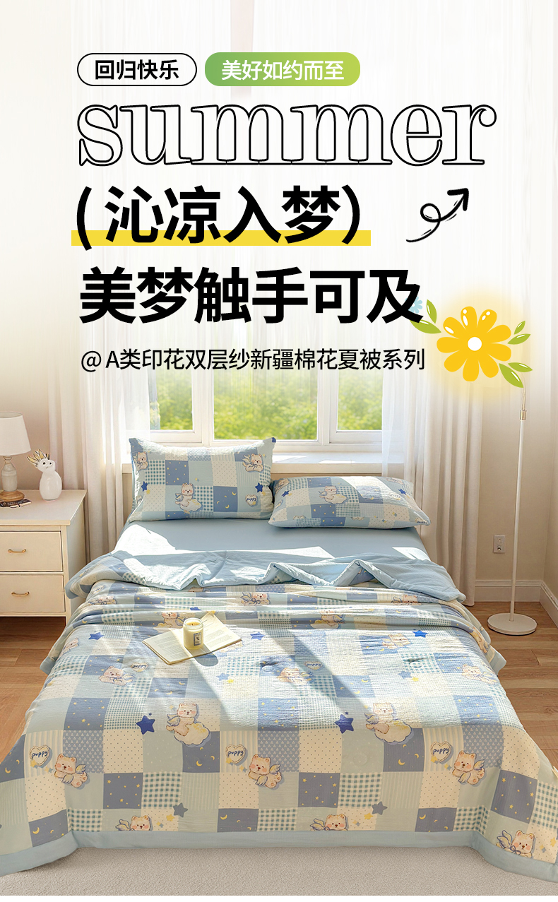 (总)晓时候 2026新款A类云感双层纱夏被棉花被小清新印花夏凉被空调被,奶芙狗,安然入夏,缤纷水果,豆蔻,多彩波点,繁花,蝴蝶结-紫,花间兔,蓝色泡芙狗,洛神花间,萌宠派对,萌萌星星人,芊芊花语,俏皮狗,甜甜西高地,甜心女孩,小确幸,星星喵