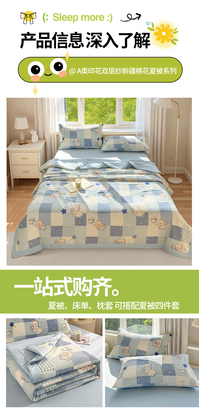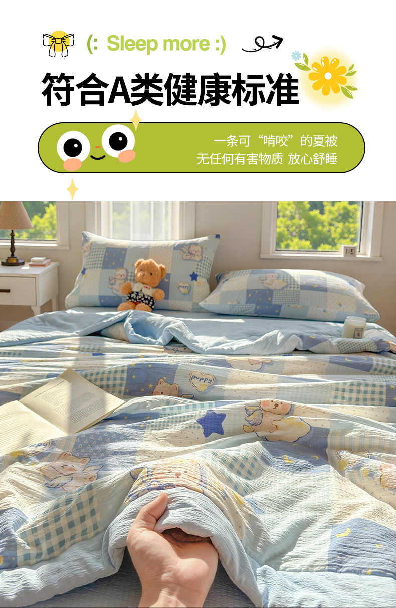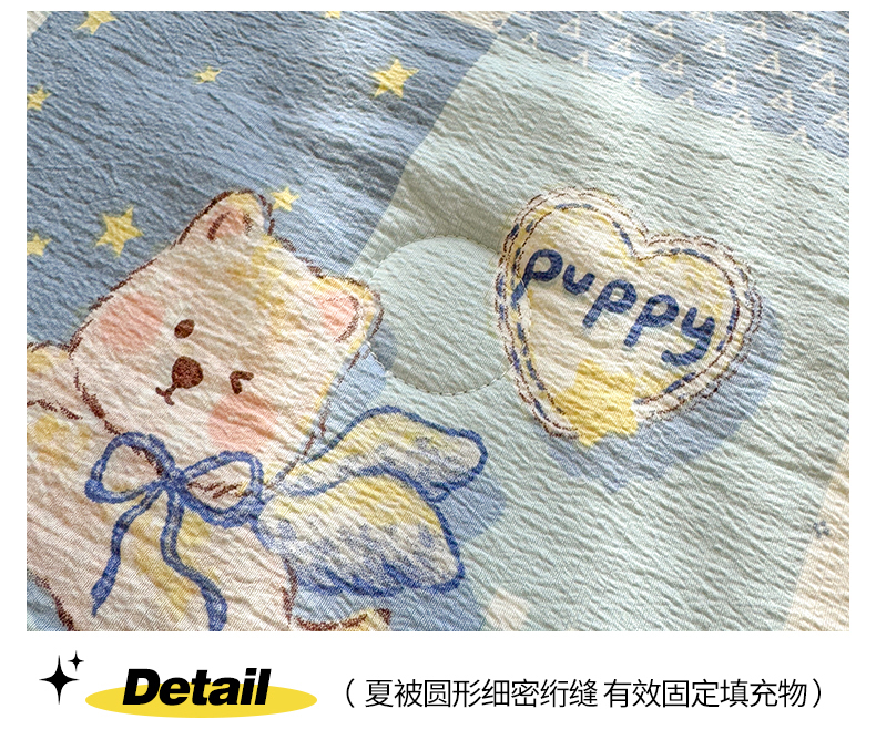商品名称:晓时候 2026新款A类云感双层纱夏被棉花被小清新印花夏凉被空调被 蓝色泡芙狗