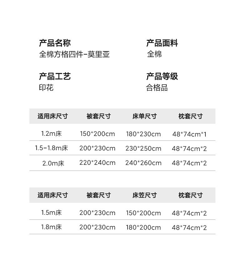 【床笠款】1.5四件套-被套200x230 | ¥125.00 |
