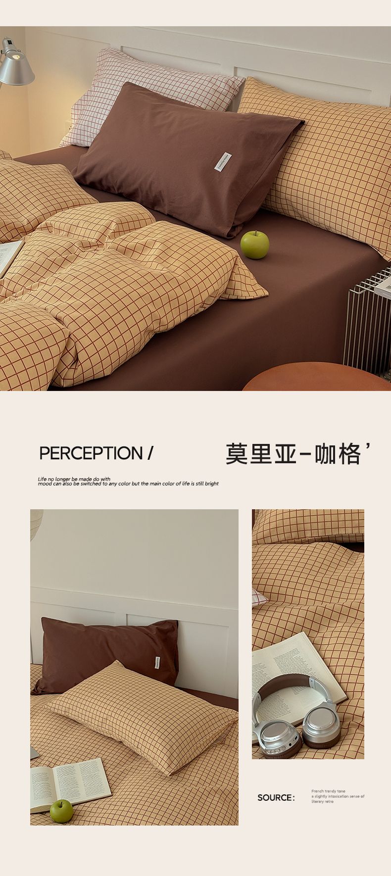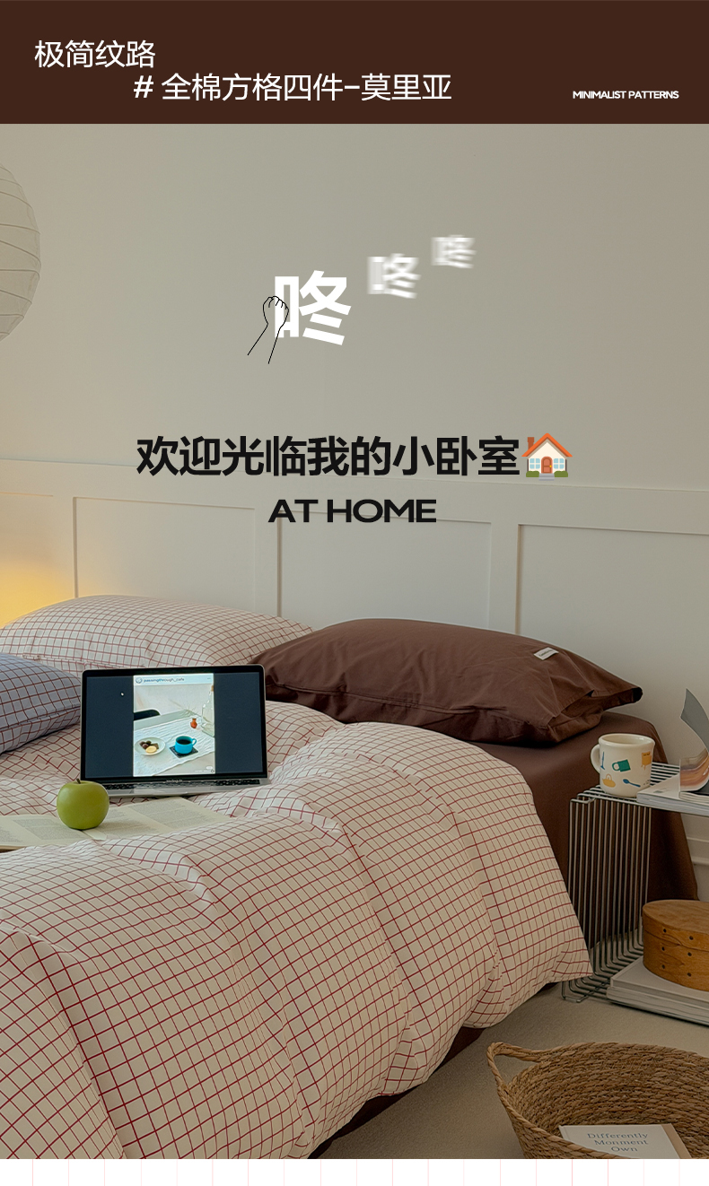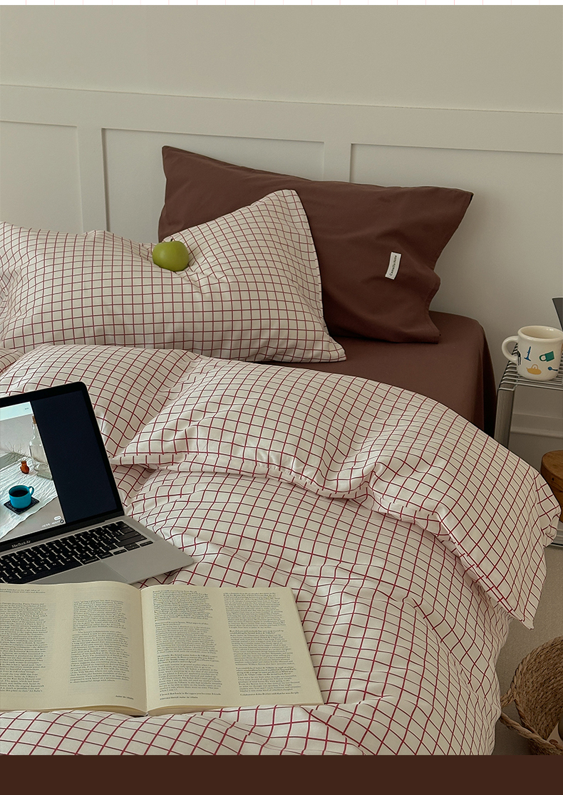 当前位置: 91家纺网 > 商品网购 > 床品套件 > 四件套 > 全棉普通四件套 > 山茶家居-原创设计 2026春夏新款简约全棉纯棉格子印花四件套-莫里亚 莫里亚-白格