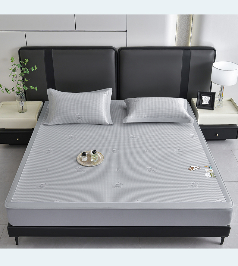 (总)小牛席业 2026新款半定位大提花凉感冰丝席(床笠款)凉席竹席藤席冰藤席乳胶席豆豆席,灰色,粉色,蓝色,香槟