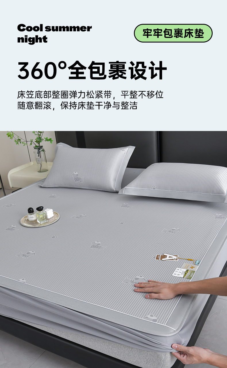 (总)小牛席业 2026春夏新款轻奢半定位凉感冰丝席凉席席子系列床笠款,轻奢半定位-粉色 床笠款,轻奢半定位-灰色 床笠款,轻奢半定位-蓝色 床笠款,轻奢半定位-抹茶 床笠款,轻奢半定位-香槟 床笠款