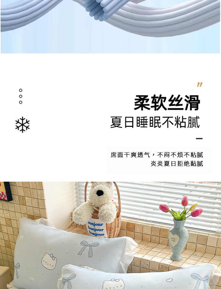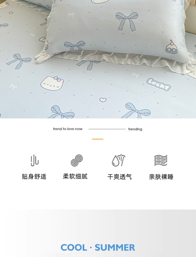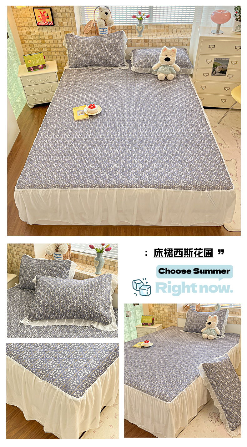 • 91家纺网 家纺一手货源 找家纺 川悦生活 2026新款雪纺冰丝床裙凉席三件套 床裙海盐小咪