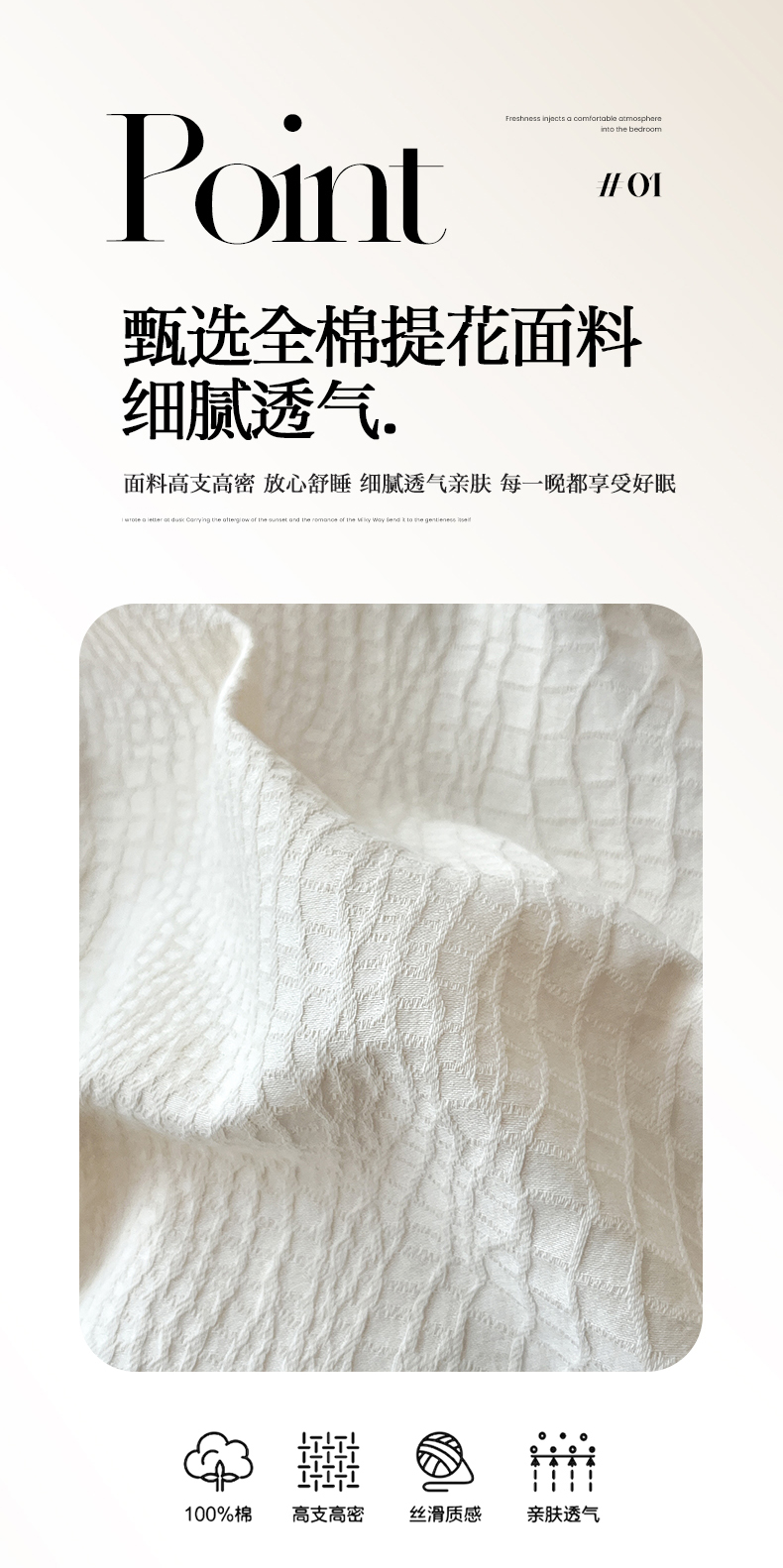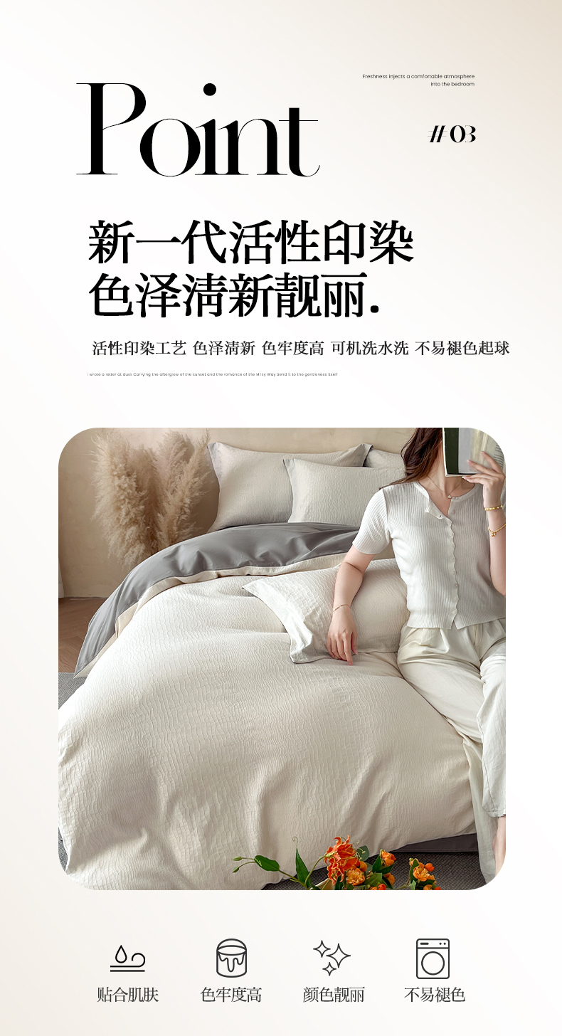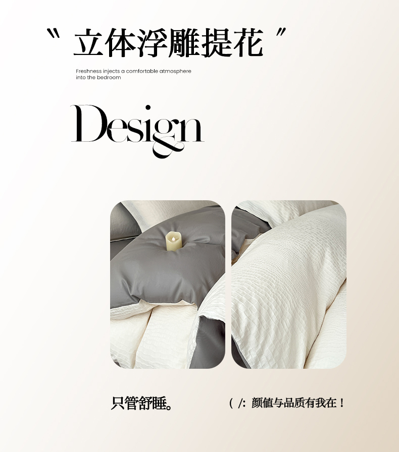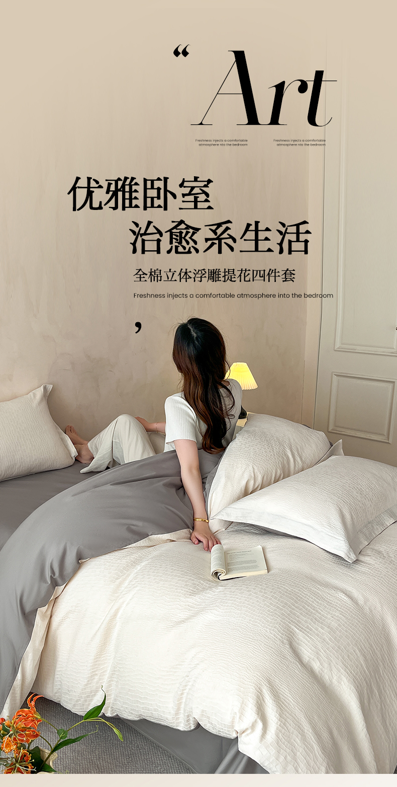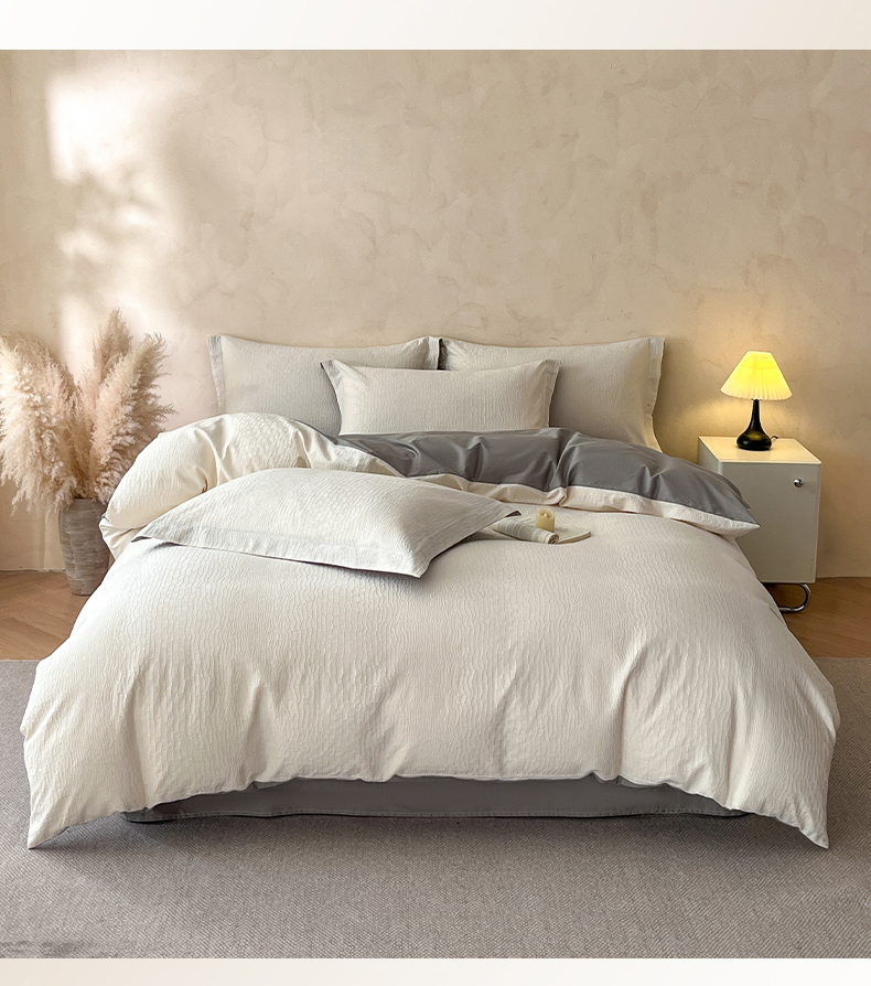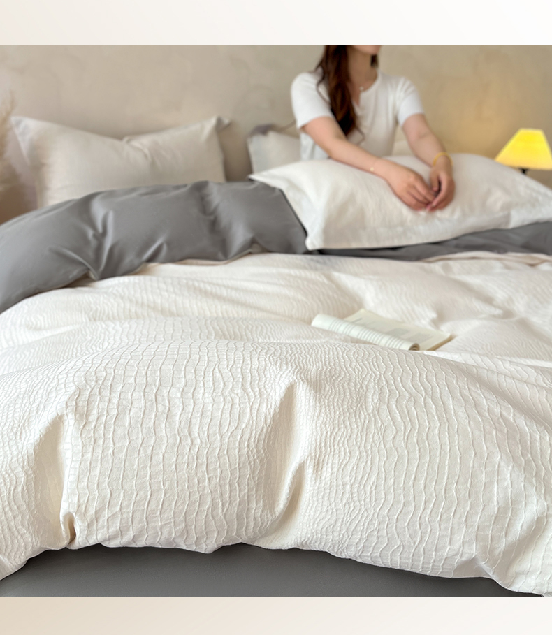 当前位置: 91家纺网 > 商品网购 > 床品套件 > 四件套 > 全棉普通四件套 > 火麒麟家纺 2026新款A类全棉纯棉水洗立体浮雕提花纯棉四件套 石烁(奶昔白)