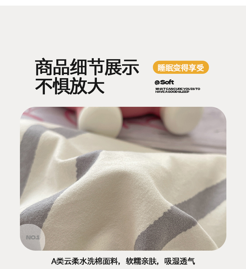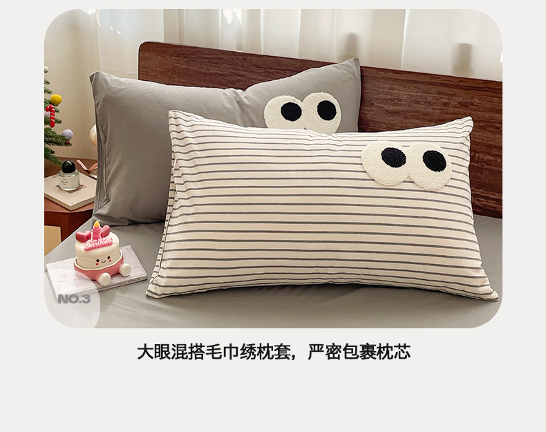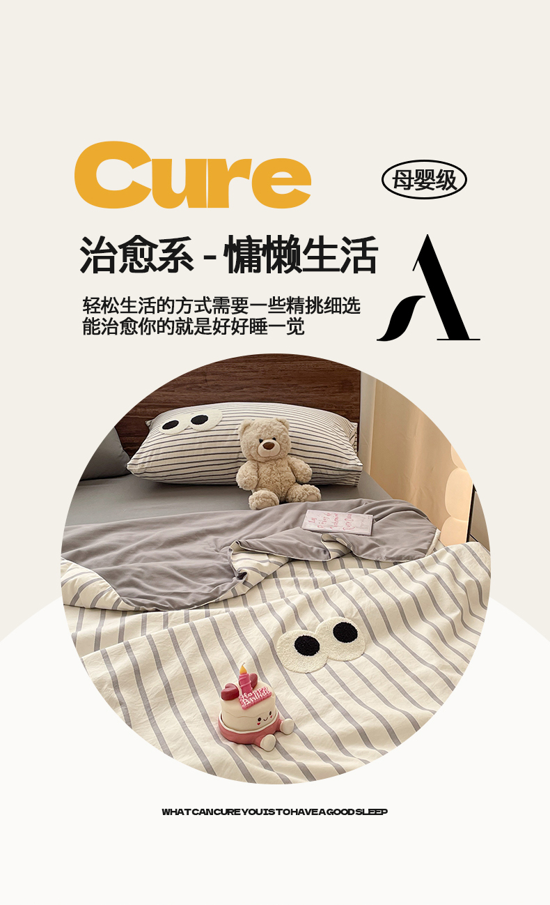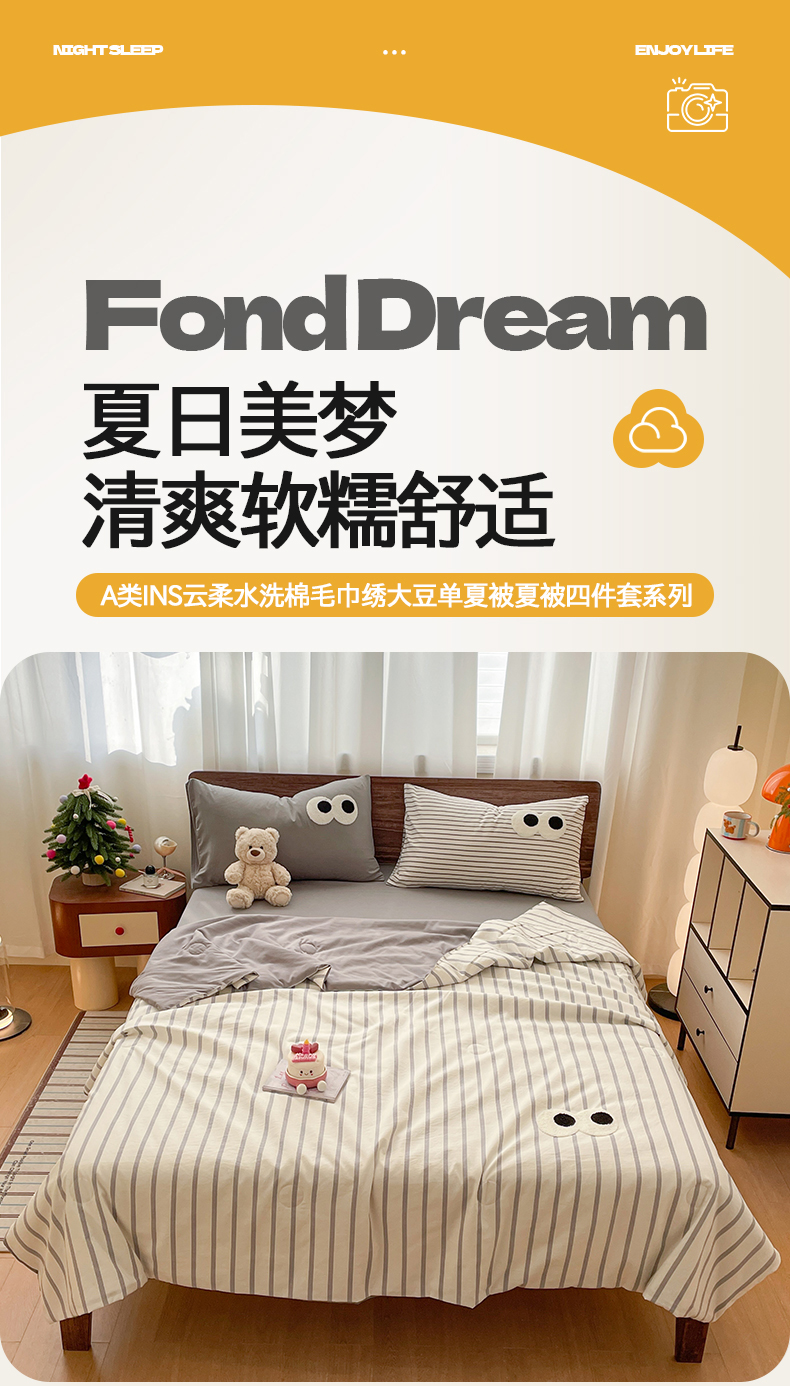 • 91家纺网 家纺一手货源 找家纺 桃心家居 2026春夏新款A类ins云柔水洗棉升级毛巾绣大眼睛大豆单夏被夏被四件套 水洗棉-大眼睛夏被灰条拿铁