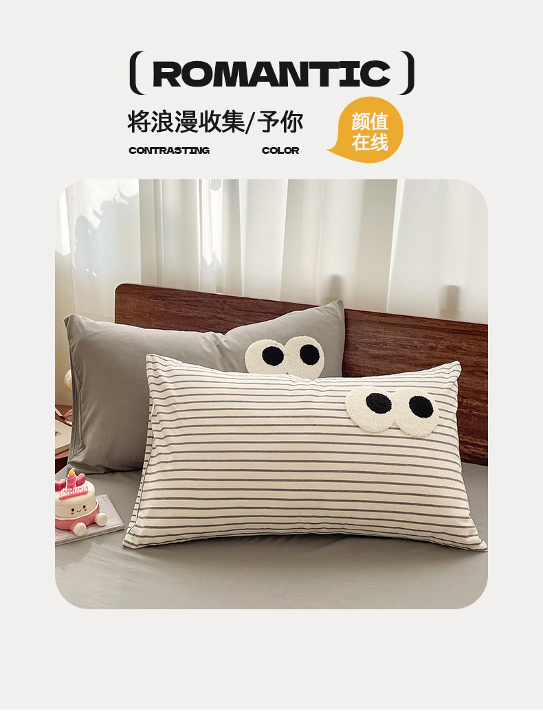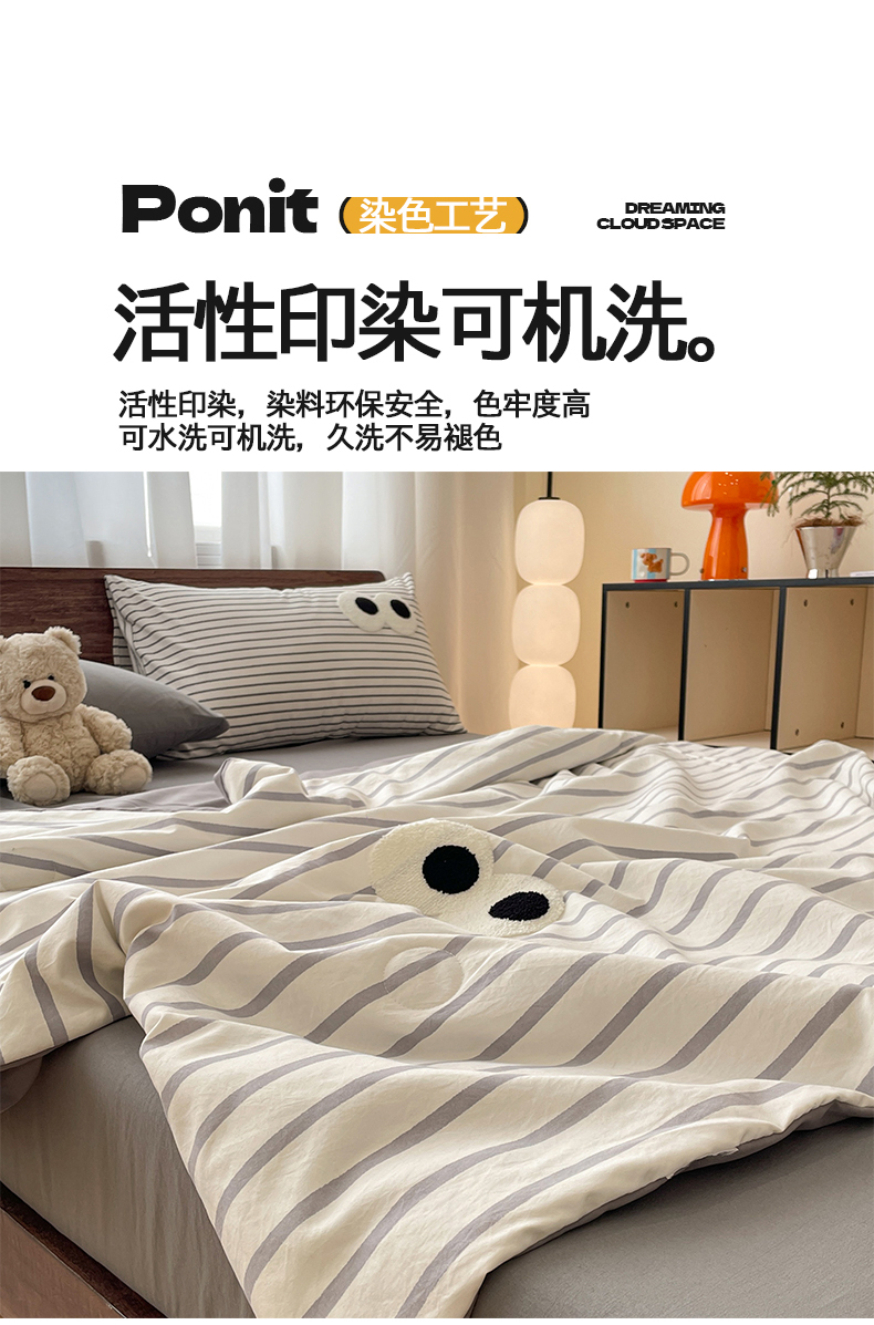 桃心家居 2026春夏新款A类ins云柔水洗棉升级毛巾绣大眼睛大豆单夏被夏被四件套 水洗棉-大眼睛夏被灰条拿铁