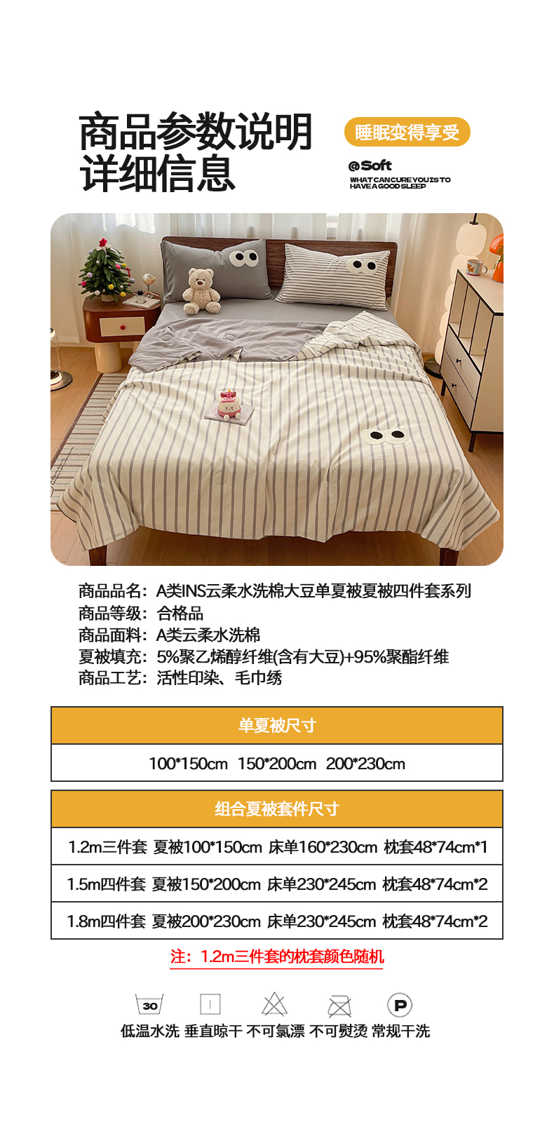 • 适用季节: 空调被/夏凉被