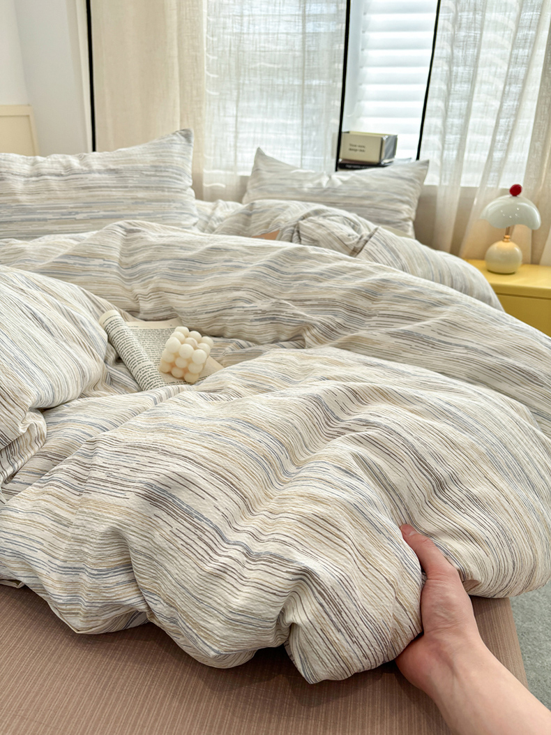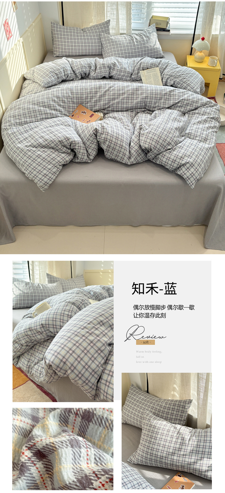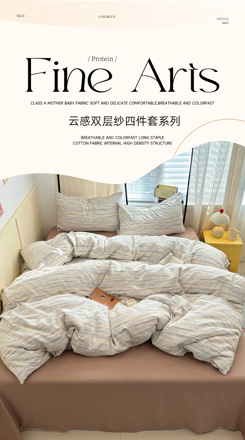 当前位置: 91家纺网 > 商品网购 > 床品套件 > 四件套 > 其它四件套 > N先生+V 13814689556 发大图/买家秀 2026新款无印风泡芙双层纱四件套 知禾-蓝