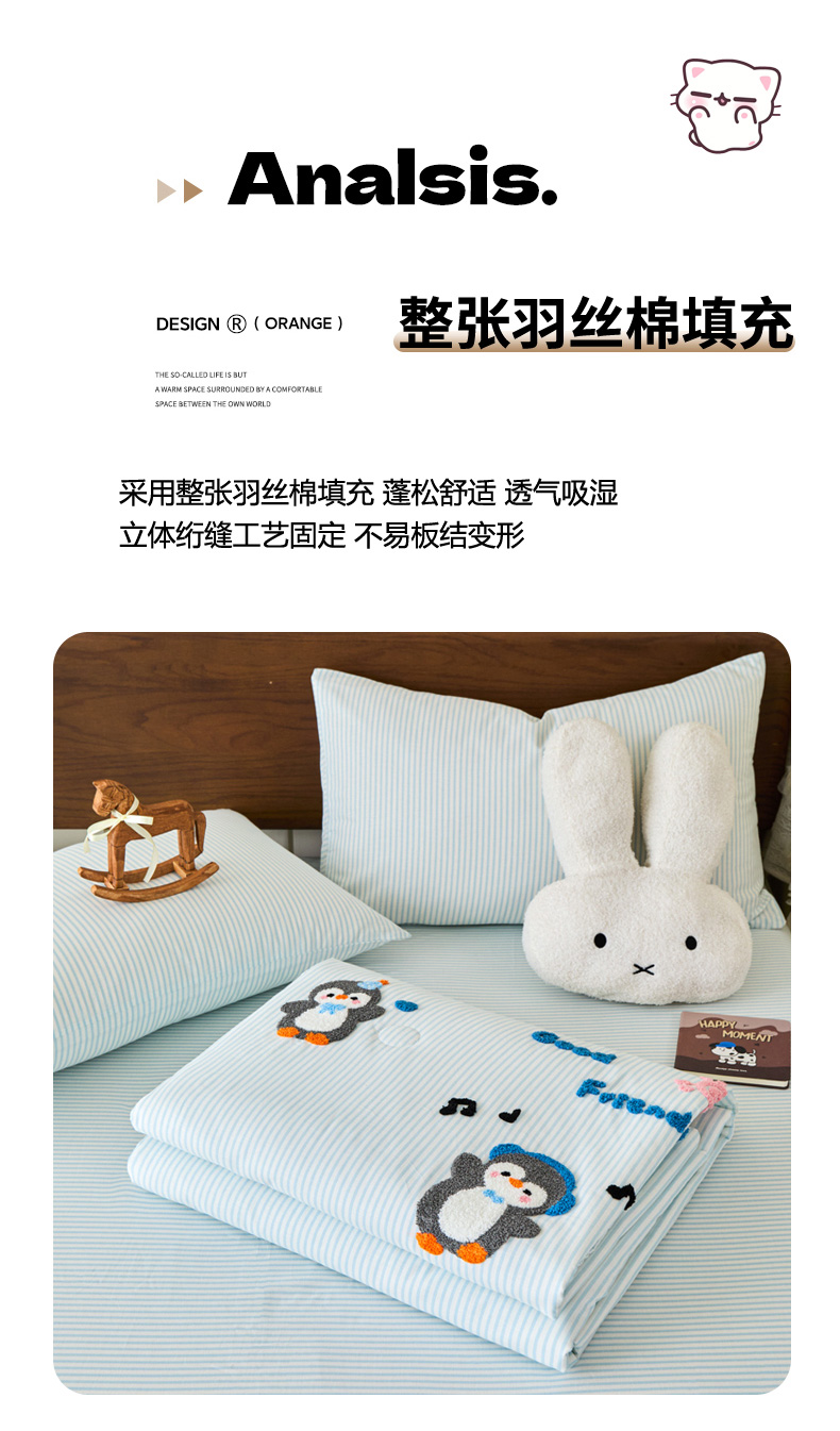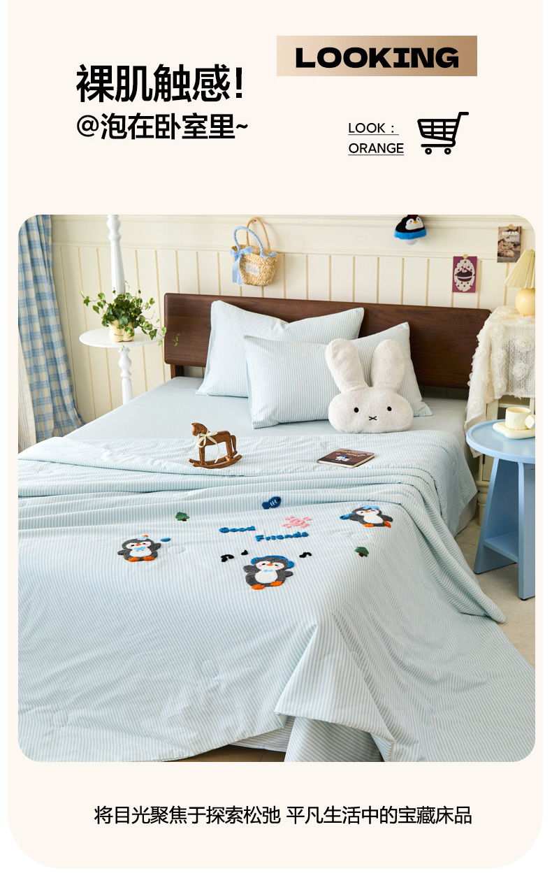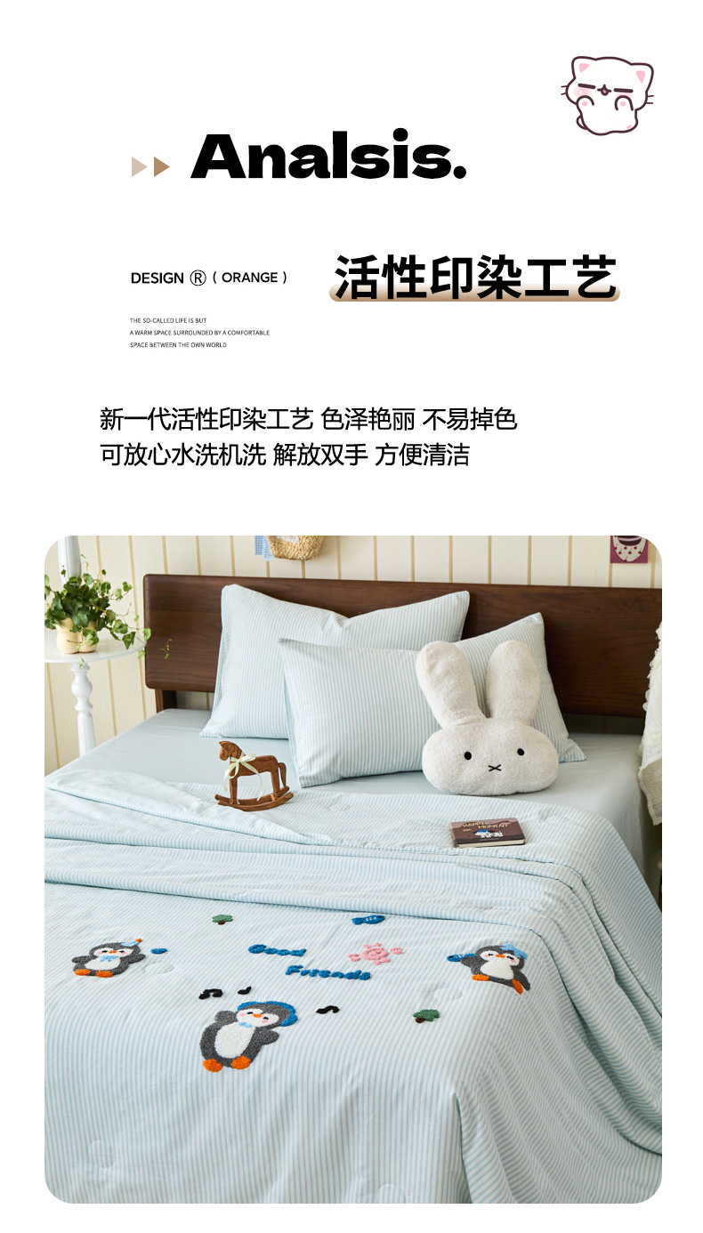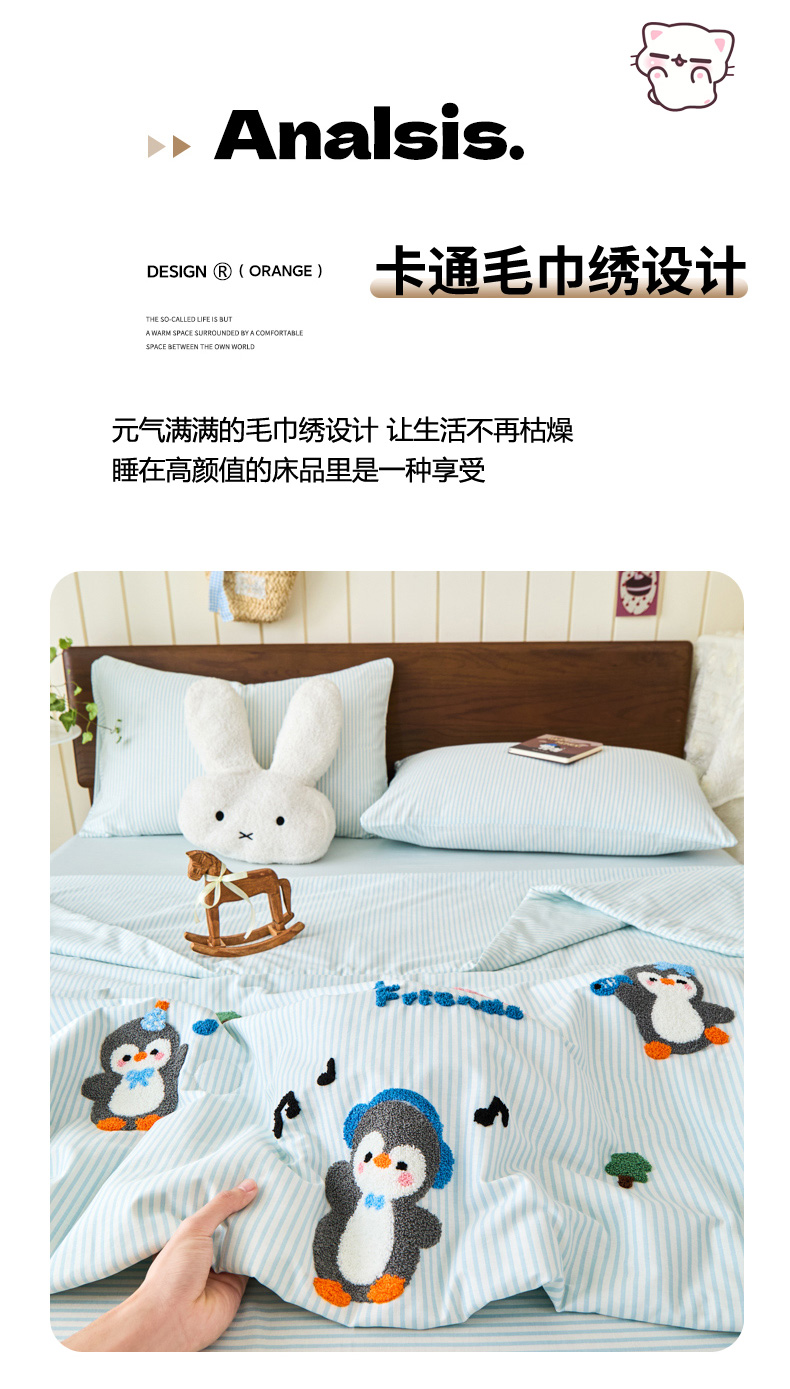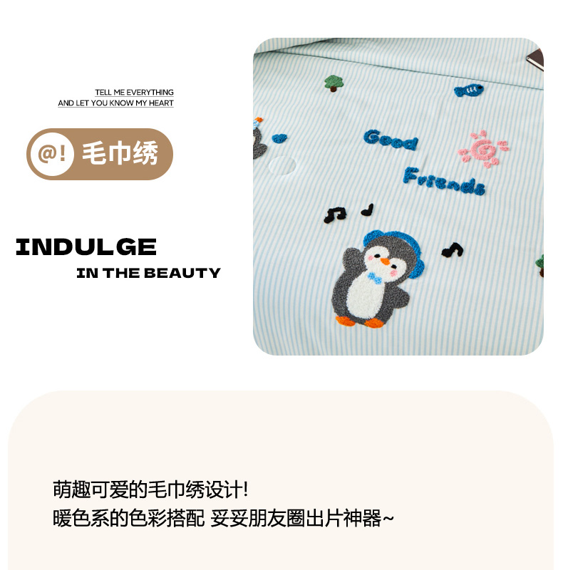 倾慕家纺 2026新款全棉卡通毛巾绣系列夏被 夏被小树企鹅