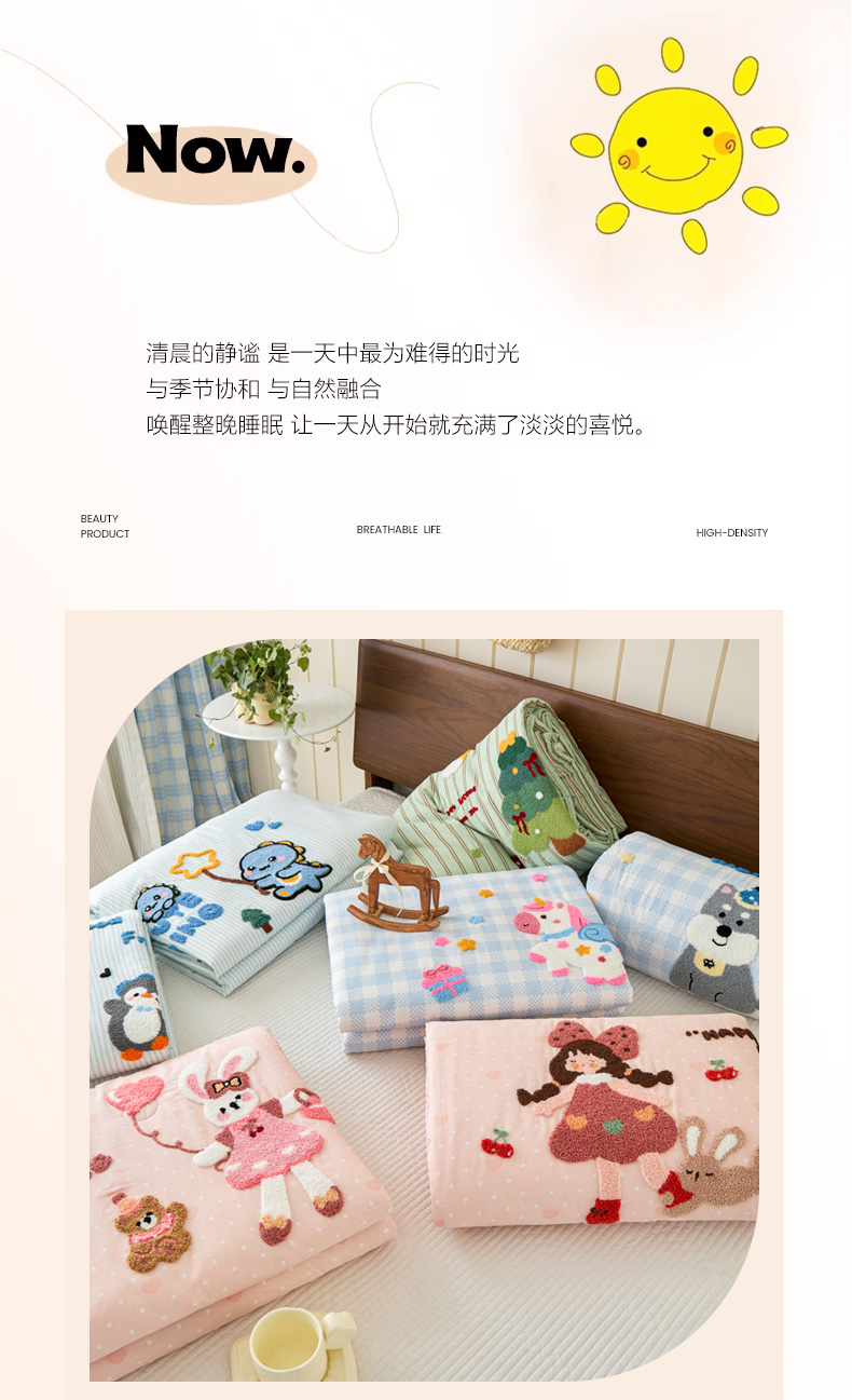(总)倾慕家纺 2026新款全棉卡通毛巾绣系列夏被,夏被彩虹马,夏被格子小狗,夏被欢乐企鹅,夏被森林小熊,夏被兔兔熊,夏被小树企鹅,夏被小兔女孩,组合