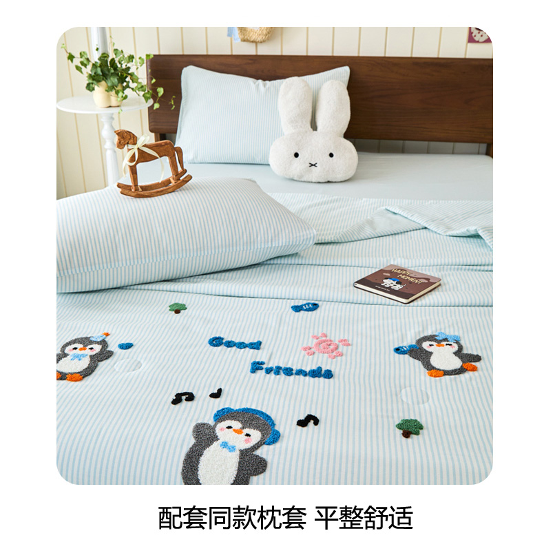 商品名称:倾慕家纺 2026新款全棉卡通毛巾绣系列夏被 夏被小树企鹅