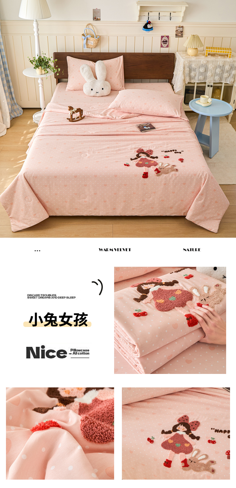 (总)倾慕家纺 2026新款全棉卡通毛巾绣系列单被套,彩虹马,格子小狗,欢乐企鹅,森林小熊,兔兔熊,小树恐龙,小兔女孩