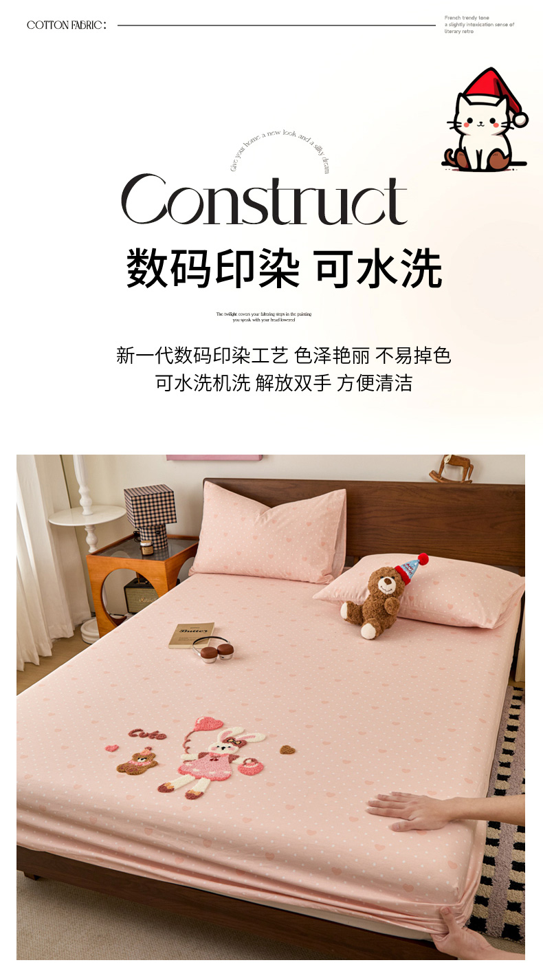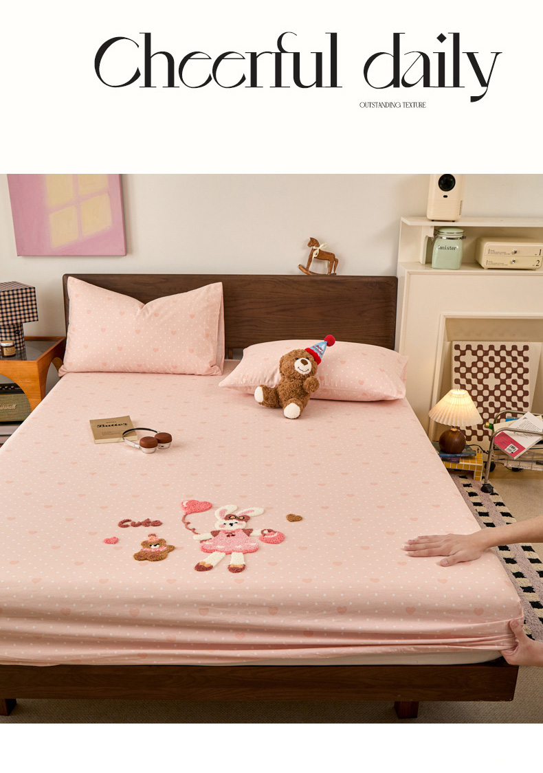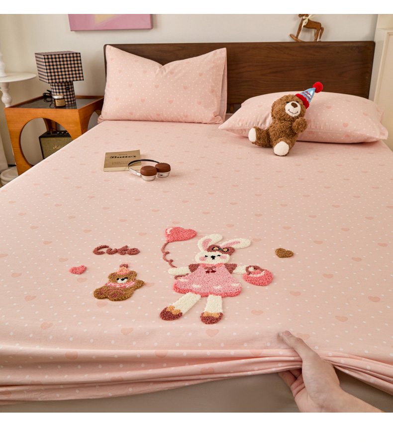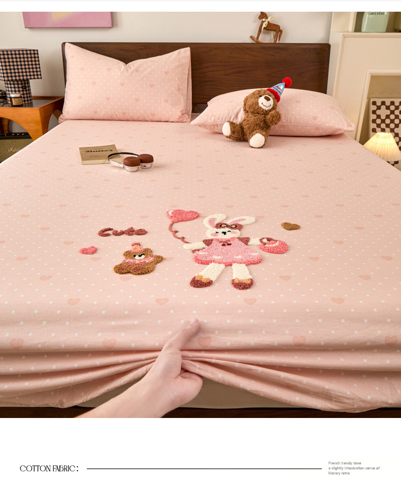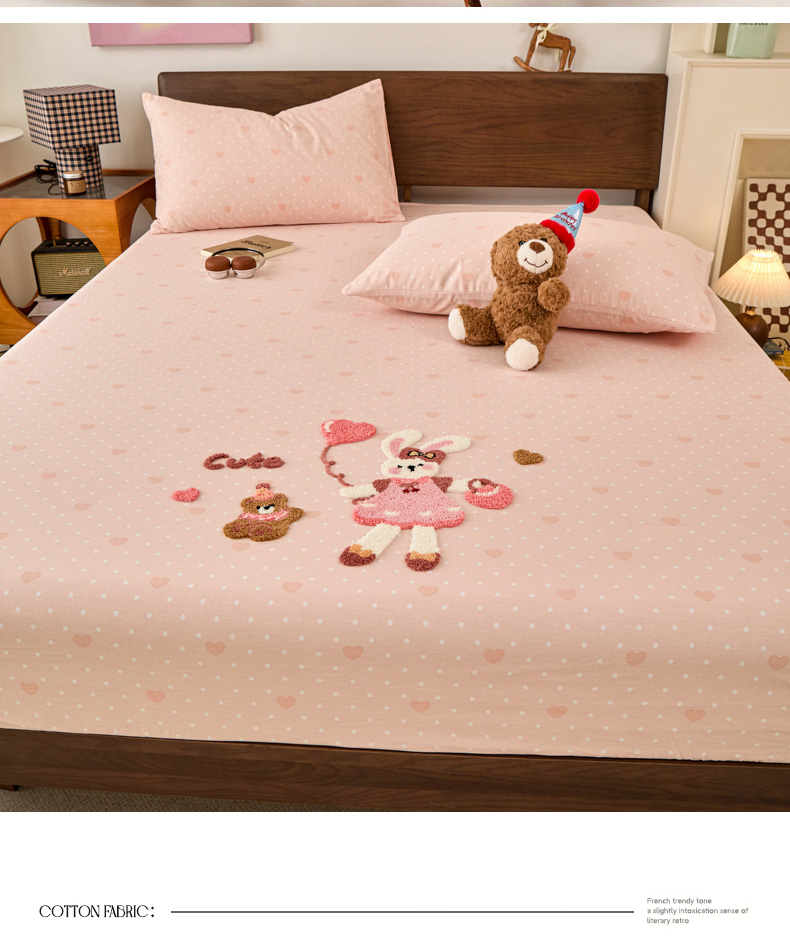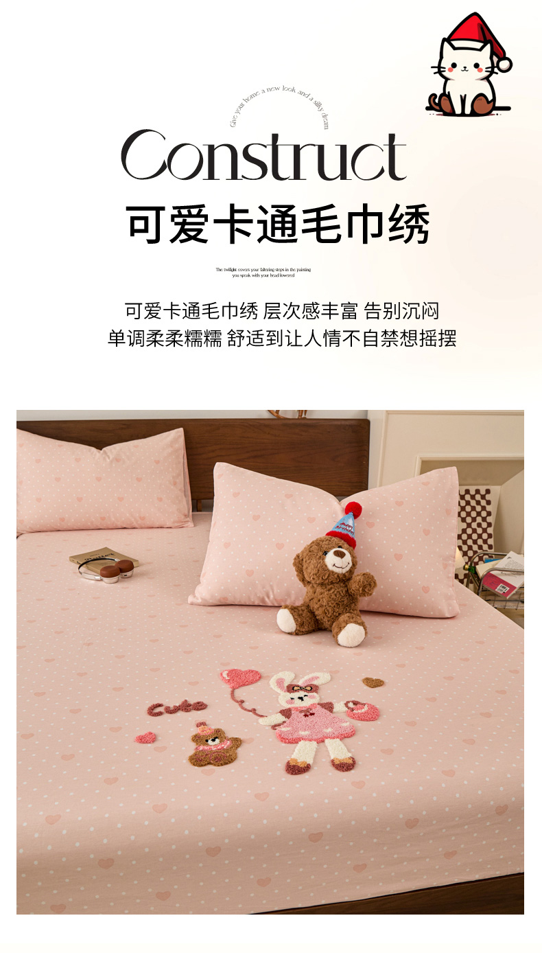 倾慕家纺 2026新款A类全棉毛巾绣系列单床笠 床笠兔兔熊