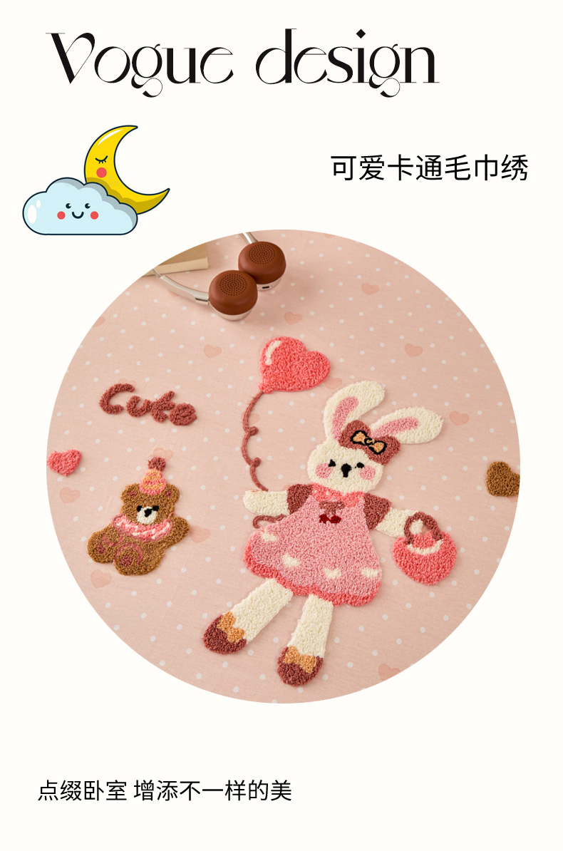 • 91家纺网 家纺一手货源 找家纺 倾慕家纺 2026新款A类全棉毛巾绣系列单床笠 床笠兔兔熊