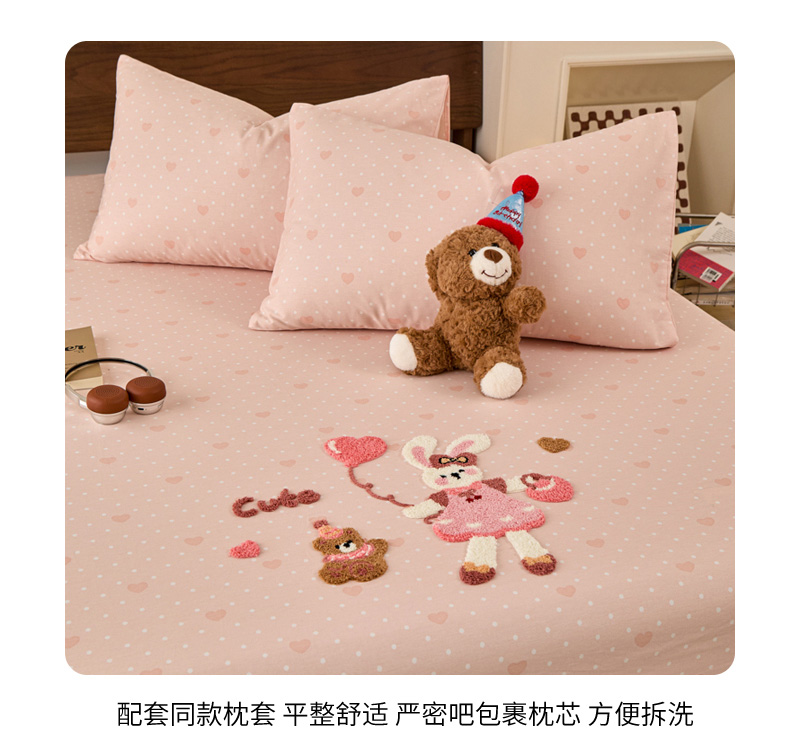 当前位置: 91家纺网 > 商品网购 > 床上用品 > 床笠 > 倾慕家纺 2026新款A类全棉毛巾绣系列单床笠 床笠兔兔熊