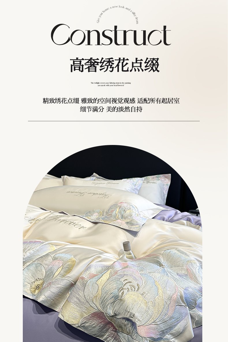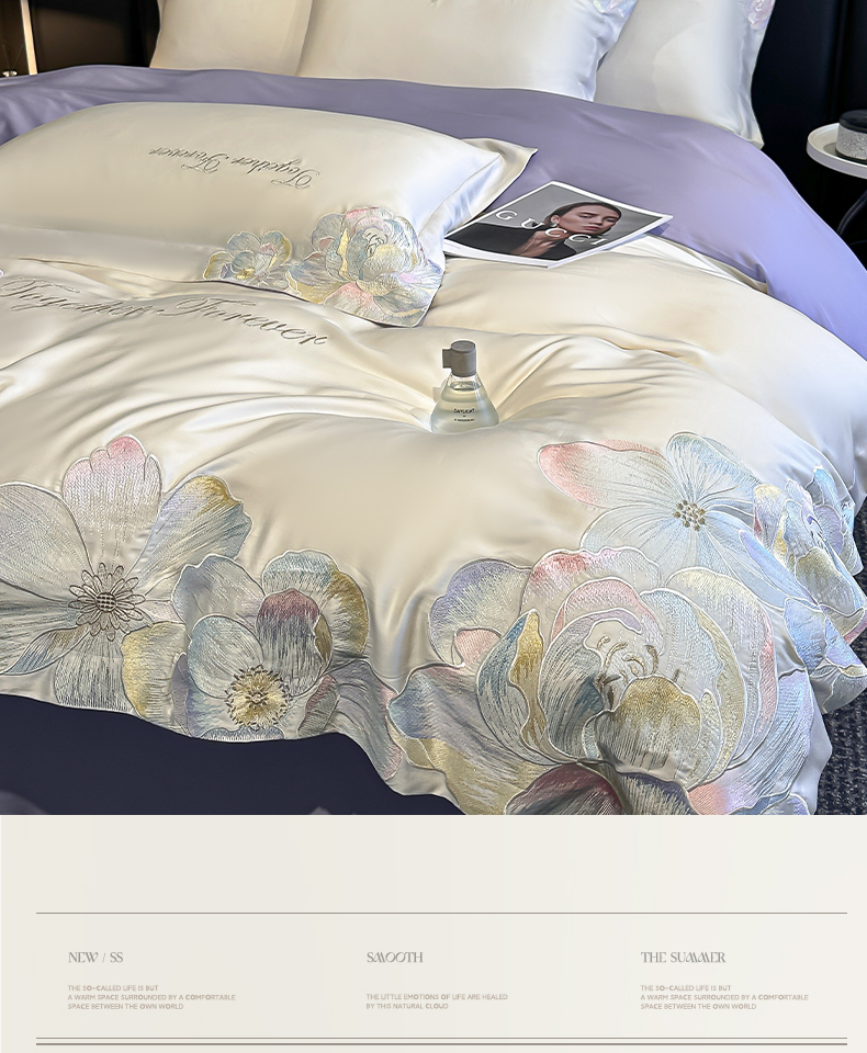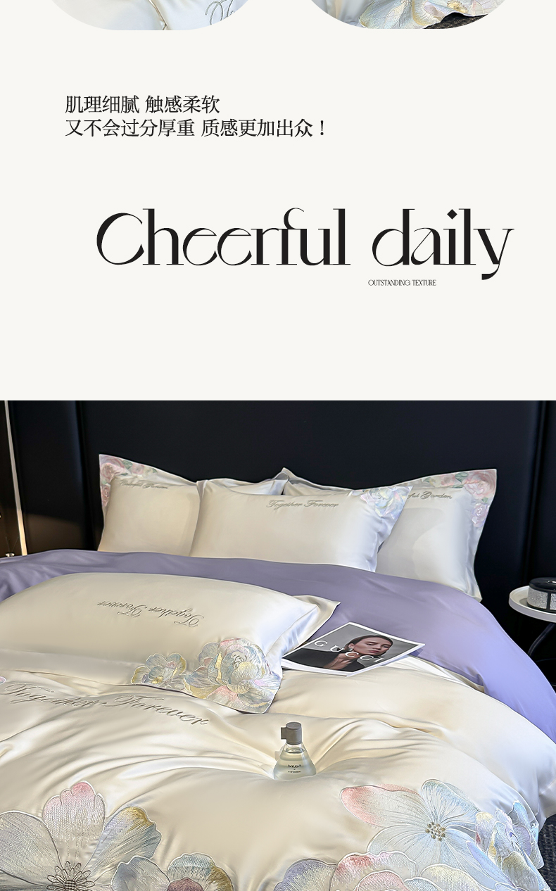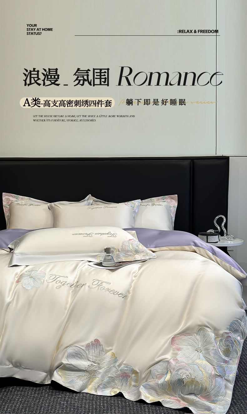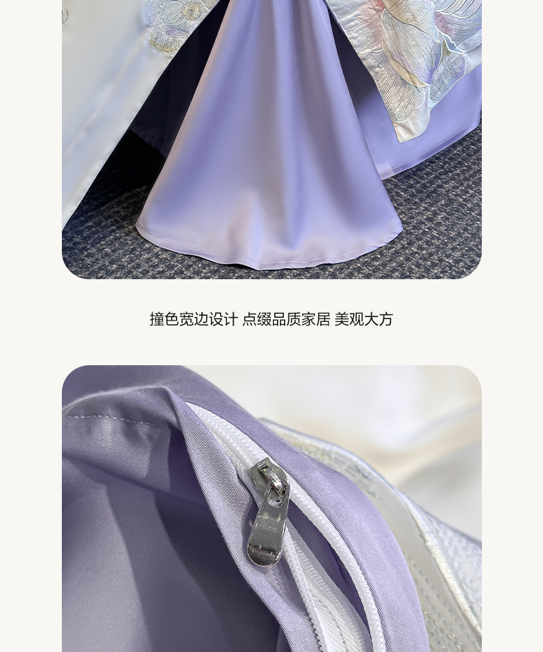 当前位置: 91家纺网 > 商品网购 > 床品套件 > 四件套 > 其它四件套 > 润锦云 2026新款高支高密刺绣四件套-花溪系列 花溪-奶昔白+紫
