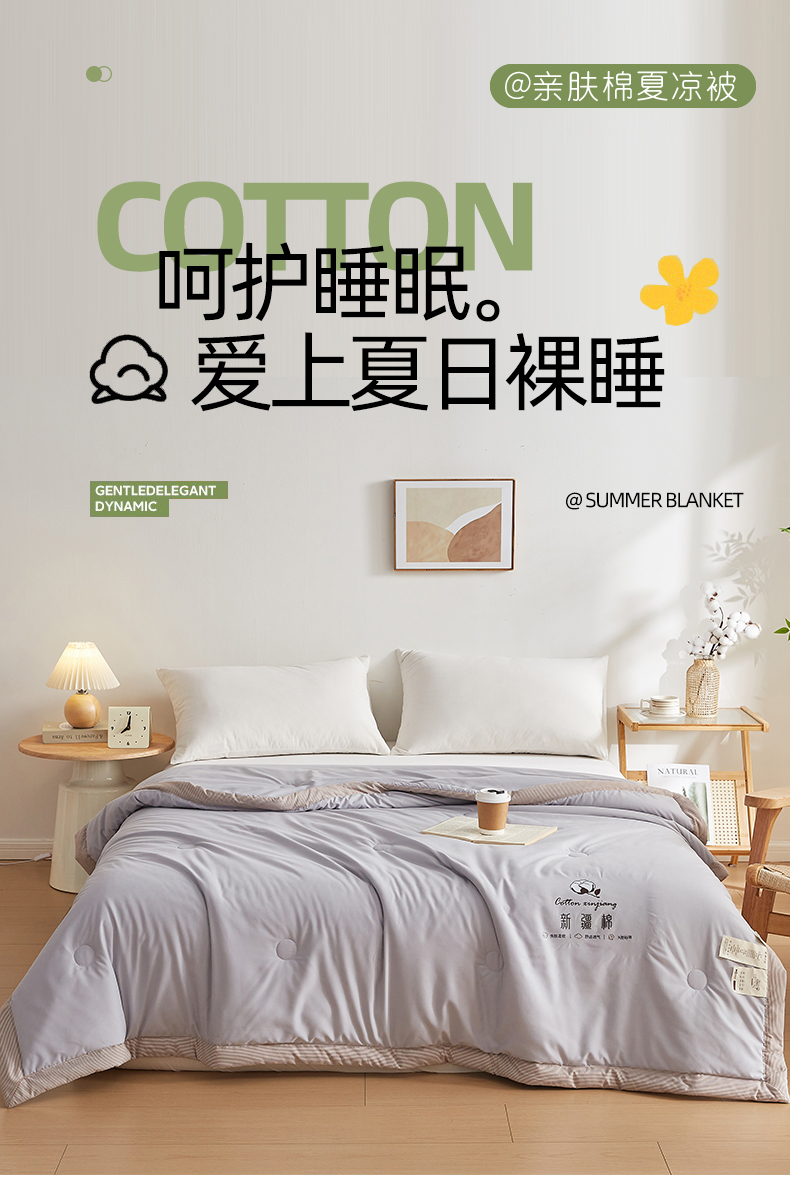 帕芬鸟家纺 2026新款100%棉花夏被纯色系列 月光灰