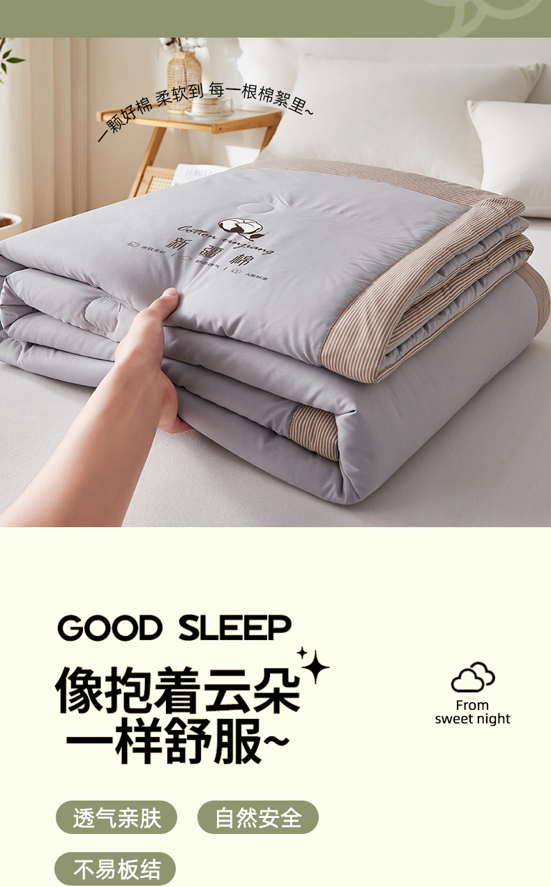 (总)帕芬鸟家纺 2025新款51%立体款棉花被 被子被芯,白咖条,灰卡条,卡其,美人玉,星空蓝