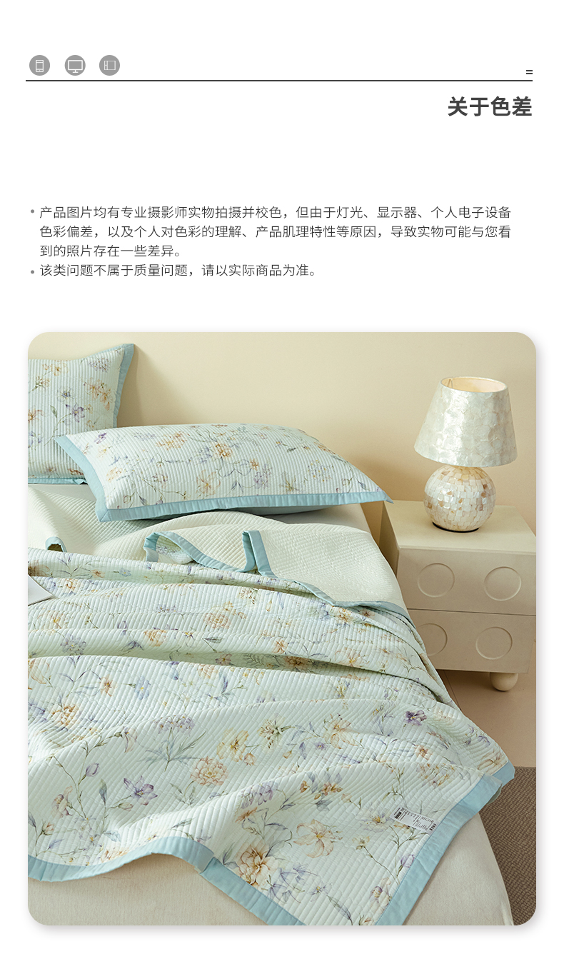 当前位置: 91家纺网 > 商品网购 > 床上用品 > 床盖 > 元元家居(元元被业) 2026新款全棉纯棉13372系列床盖单件床盖单品单床盖-印花款 春晓绿