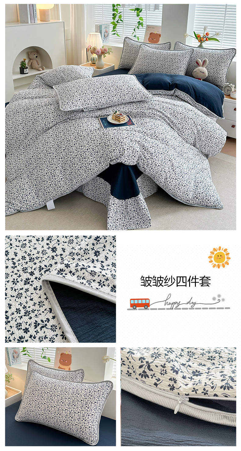 (总)爱洛家纺 2026新款印花皱皱纱四件套,粉黛草影,焦糖奶犬,咖调心韵,咖调星絮,林间粉玫,莫奈青园,墨蓝星絮,墨棕影花,奶糖花小兔,暖棕枝雪,青粉漫野,青岚细叶,清溪落英,秋栗拾光,深野碎樱,素低彩语,雾灰蝶语,雾灰小爱心,雾灰樱落,雾蓝结语,雾蓝青序,雾蓝水波纹,云间蓝雾草,云绒格间,云隙青叶,云紫轻花,紫雾星花,棕痕谍影,素墨蝶舞