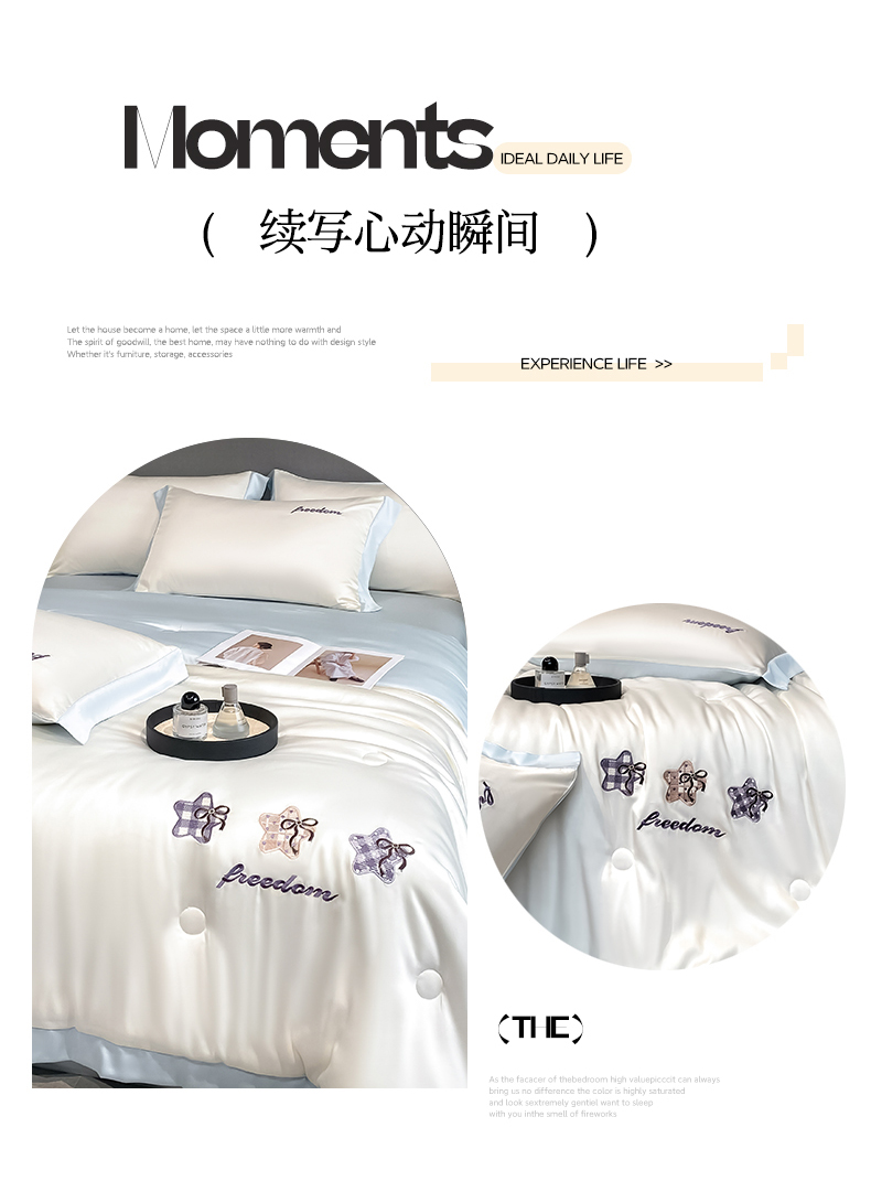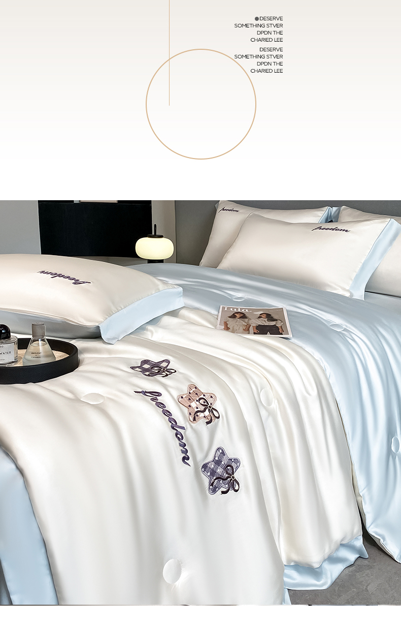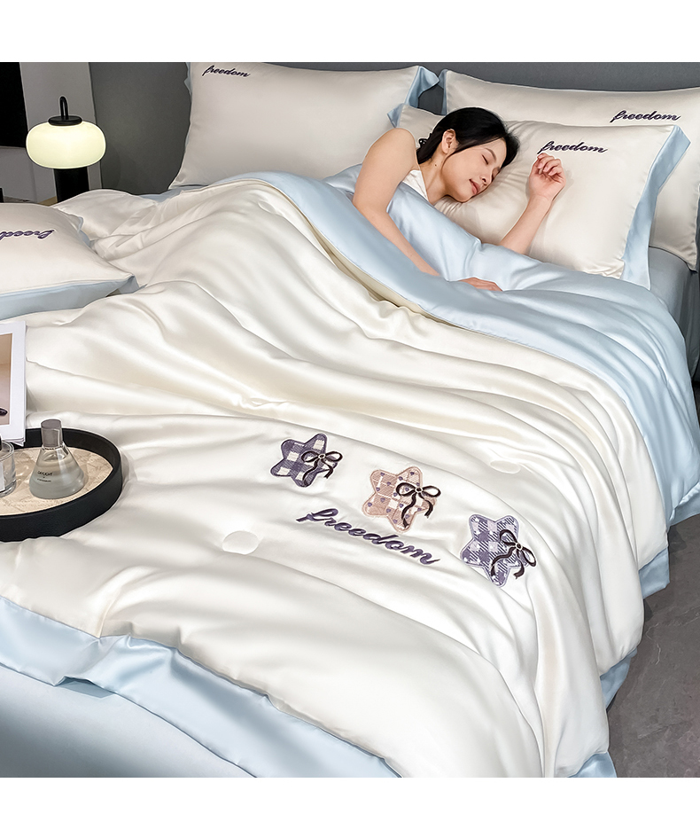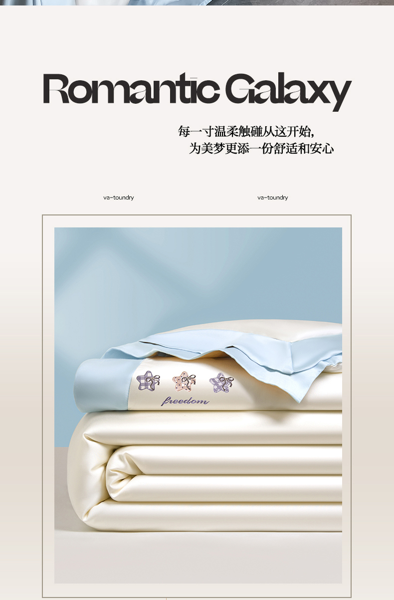 当前位置: 91家纺网 > 商品网购 > 床品套件 > 四件套 > 夏被四件套 > 云棉坊 2026新款水洗冰丝夏被宽边刺绣款-星空系列 星空-奶昔白+天空蓝