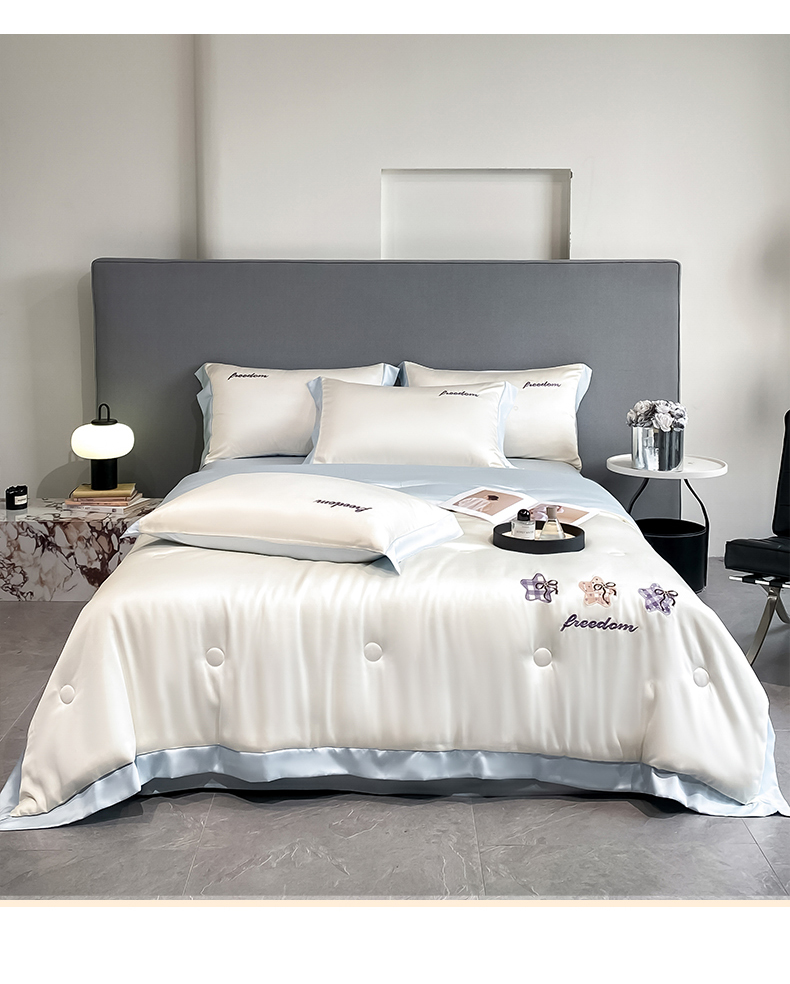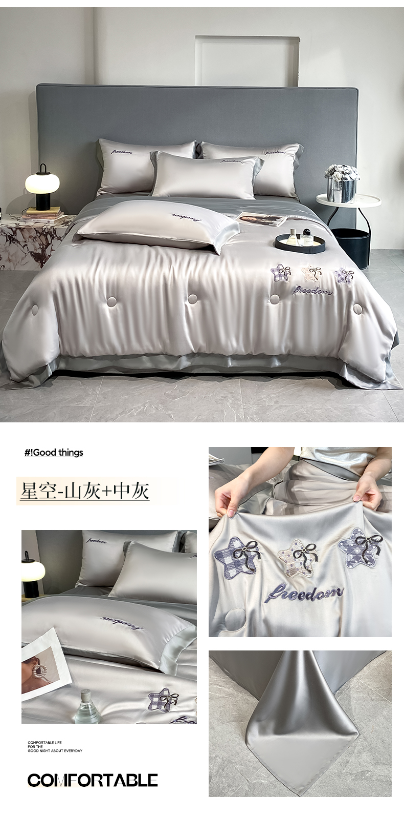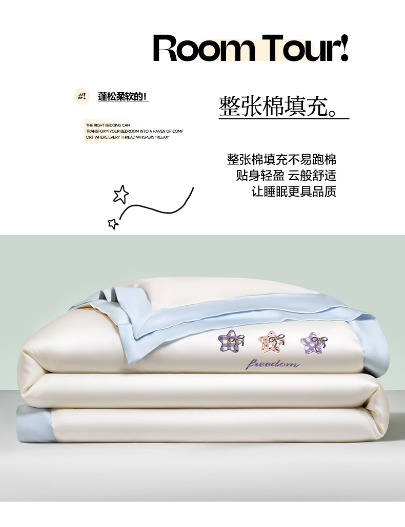 当前位置: 91家纺网 > 商品网购 > 床品套件 > 四件套 > 夏被四件套 > 云棉坊 2026新款水洗冰丝夏被宽边刺绣款-星空系列 星空-奶昔白+天空蓝