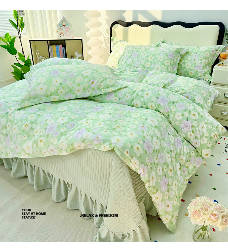当前位置: 91家纺网 > 商品网购 > 床品套件 > 四件套 > 其它四件套 > 九诺家纺 2026新款丝柔棉皱皱纱花边床盖四件套 米娅-幸福飞马